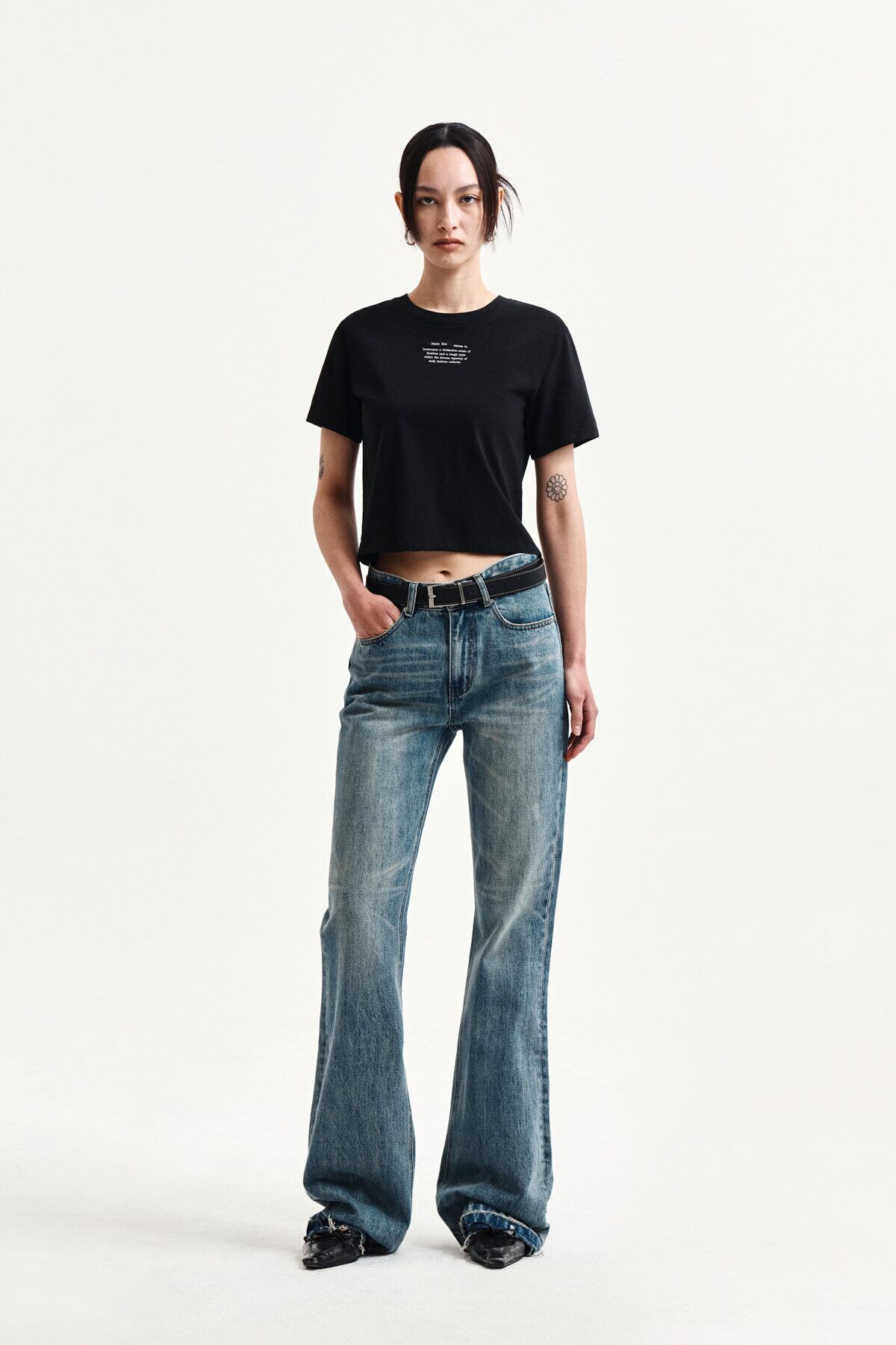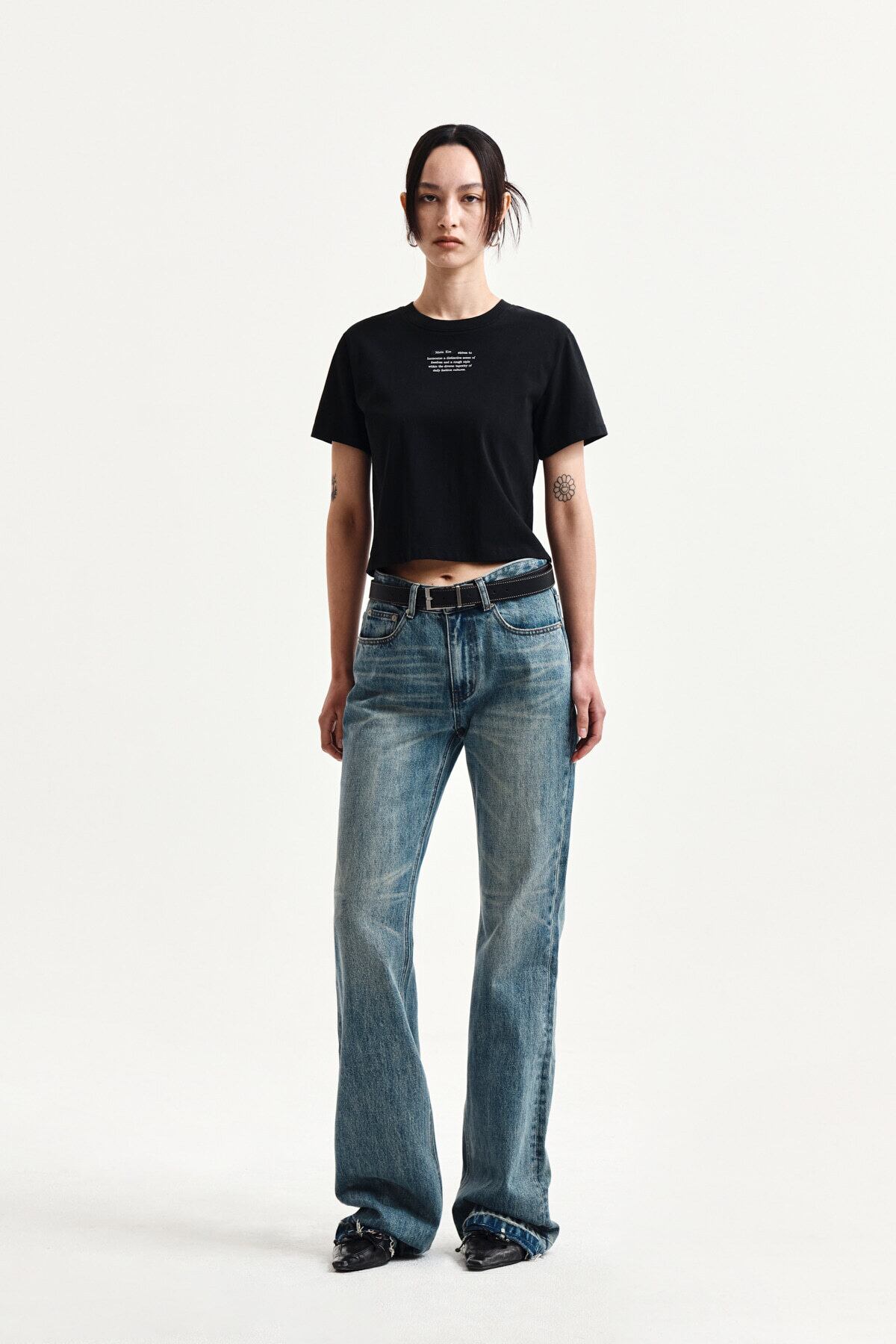 [Matin Kim] LABEL POINT LETTERING CROP TOP IN BLACK 正規品 韓国ブランド 韓国通販 韓国代行 韓国ファッション マーティンキム matinkim 日本 店舗