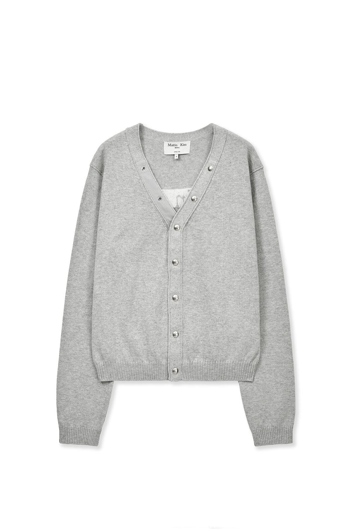 [Matin Kim] BACK LOGO SNAP BUTTON CARDIGAN IN GREY