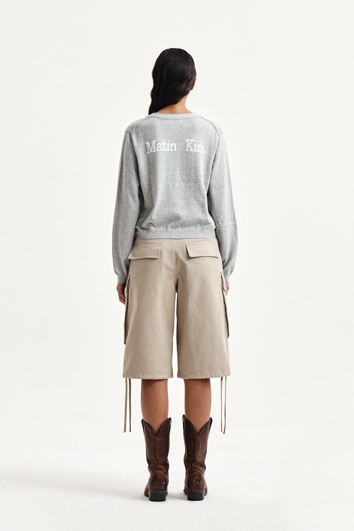 [Matin Kim] BACK LOGO SNAP BUTTON CARDIGAN IN GREY 正規品 韓国ブランド 韓国通販 韓国代行 韓国ファッション マーティンキム matinkim 日本 店舗