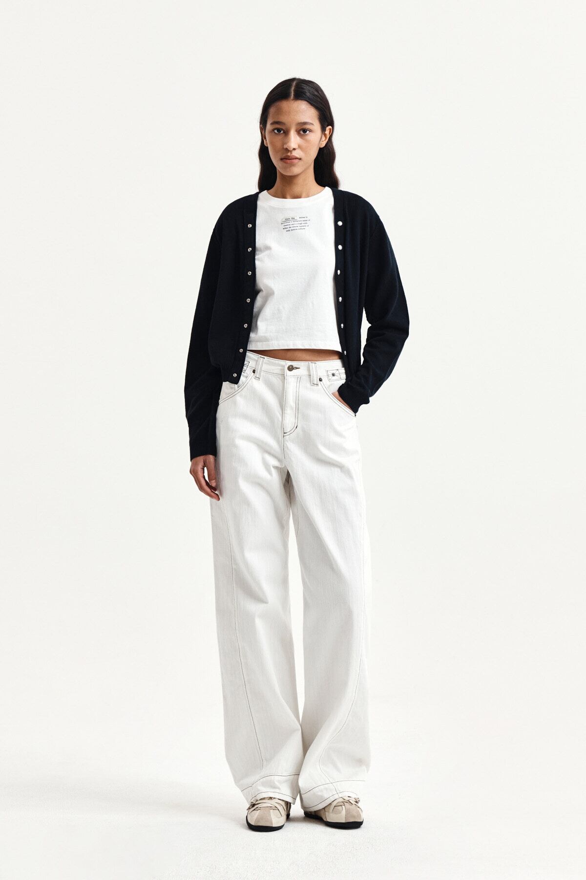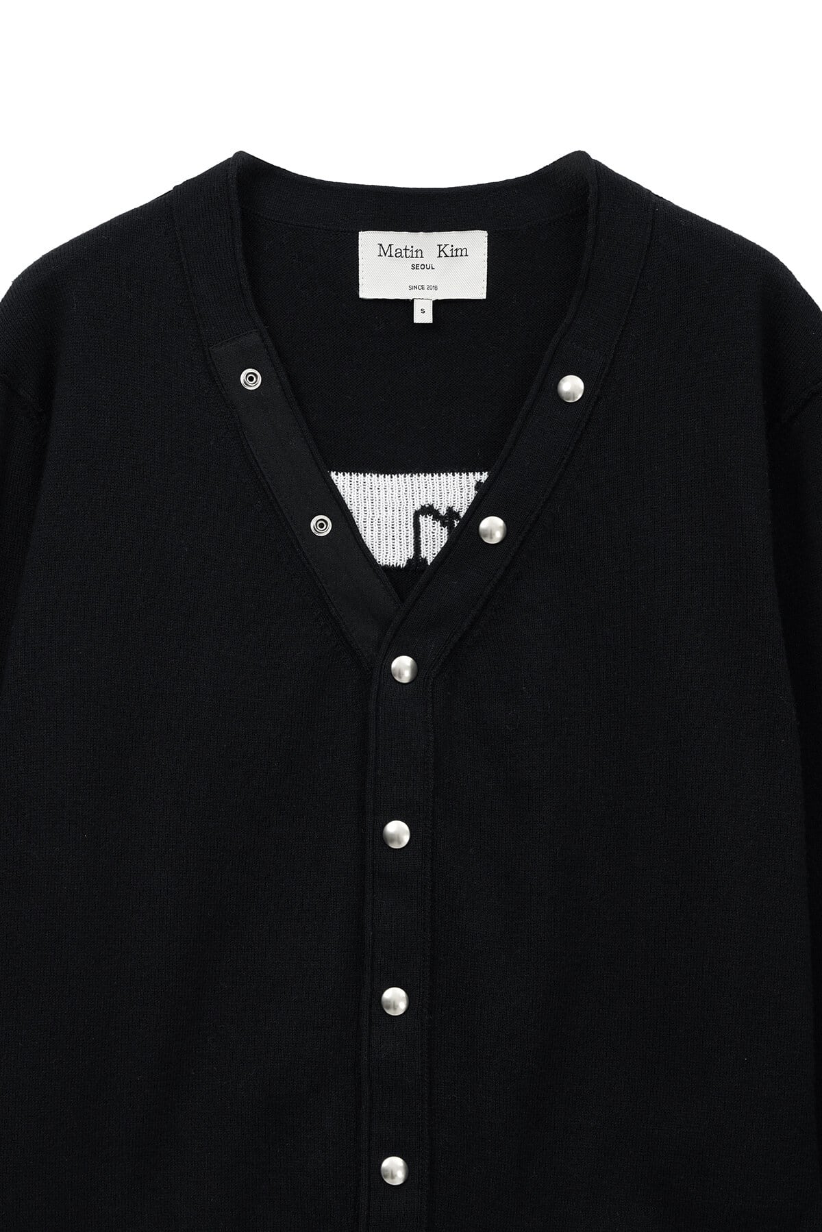 [Matin Kim] BACK LOGO SNAP BUTTON CARDIGAN IN BLACK 正規品 韓国ブランド 韓国通販 韓国代行 韓国ファッション マーティンキム matinkim 日本 店舗