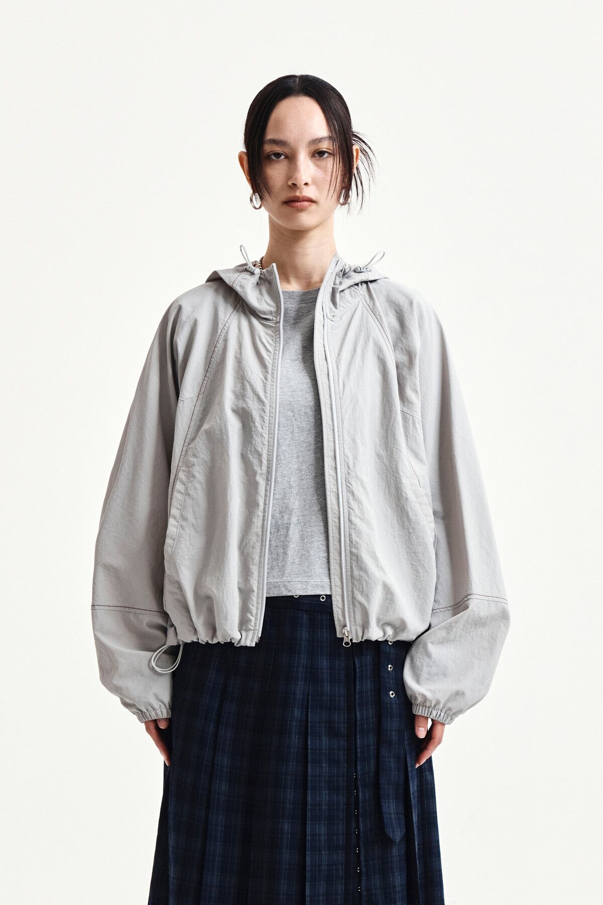 [Matin Kim] CROPPED BACK LOGO HOODY WIND BREAKER IN LIGHT BEIGE