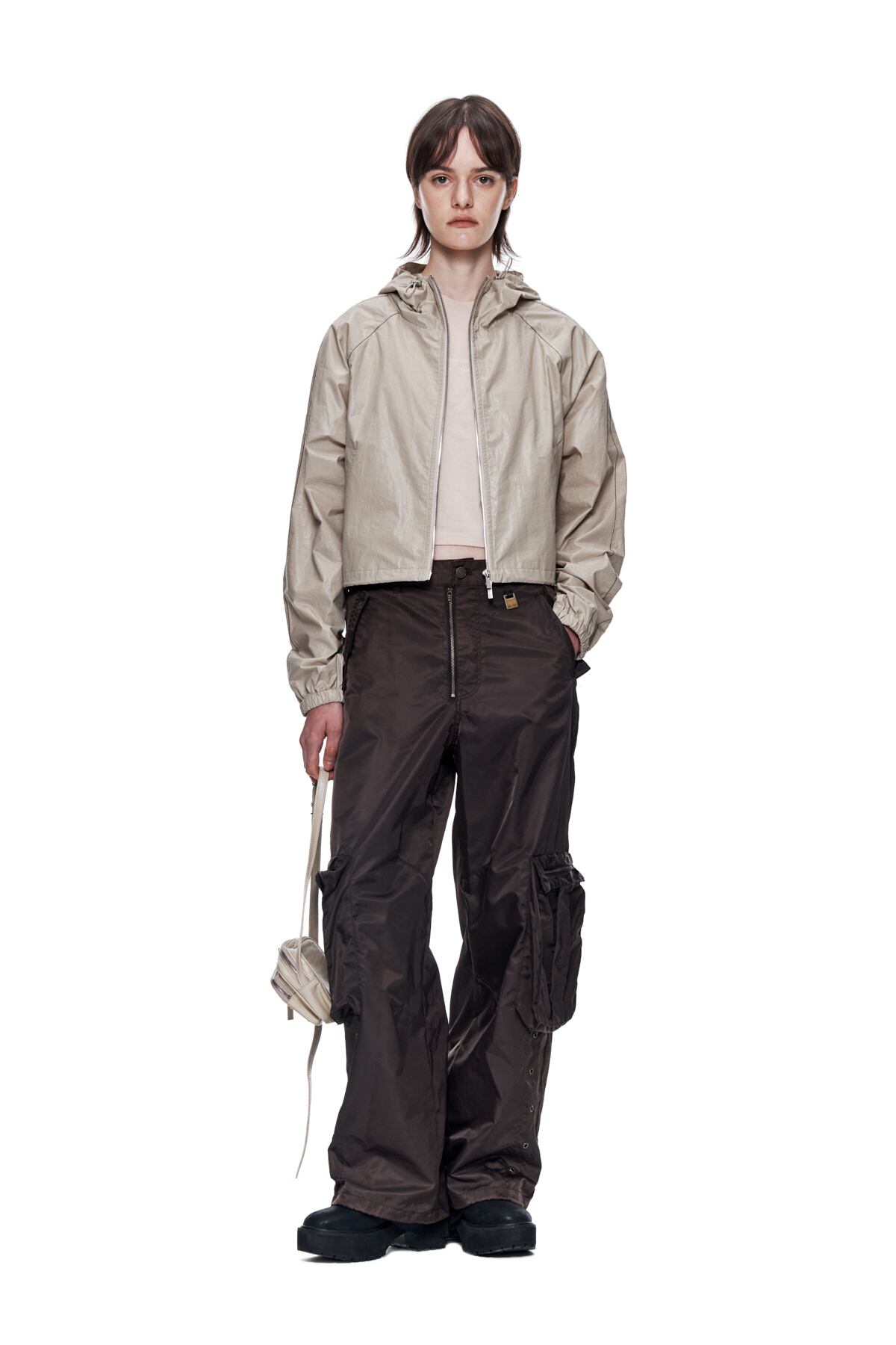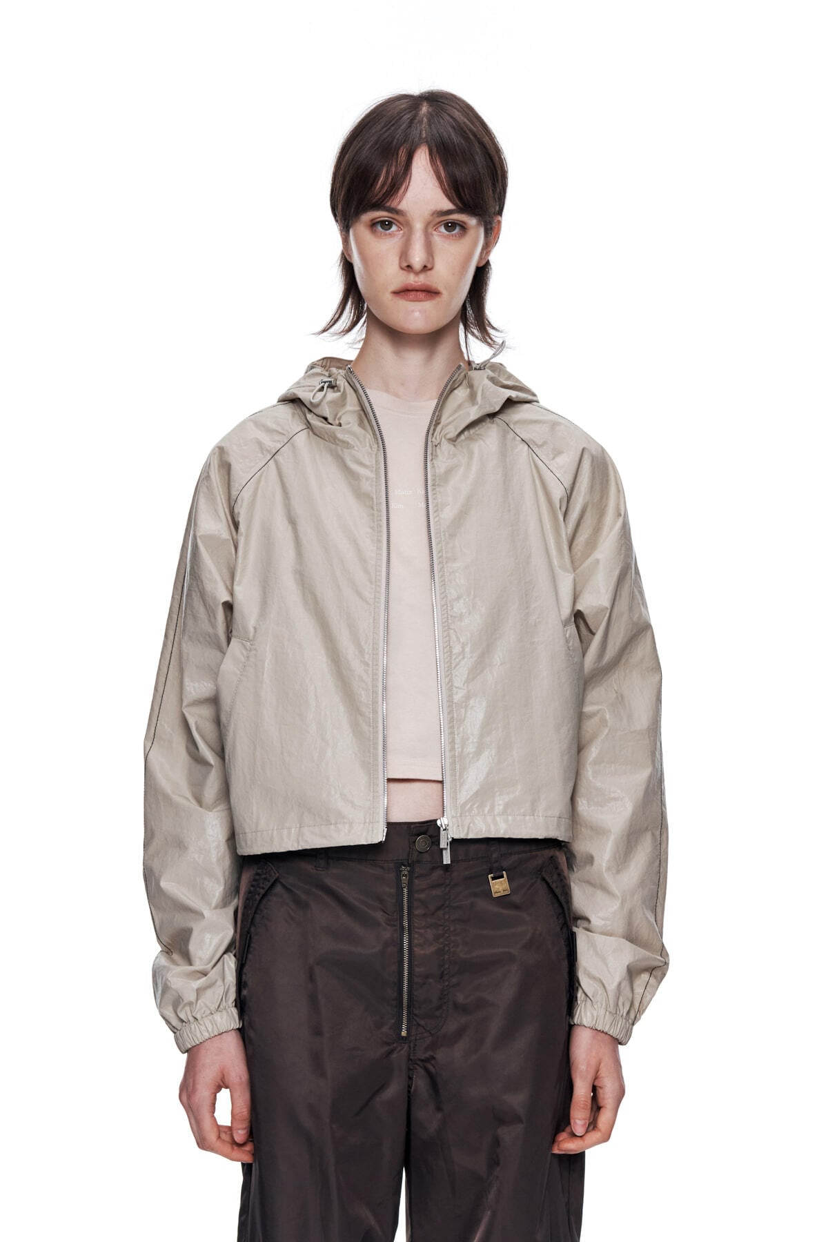 [Matin Kim] MATIN CROP HOODY COATING JUMPER IN BEIGE