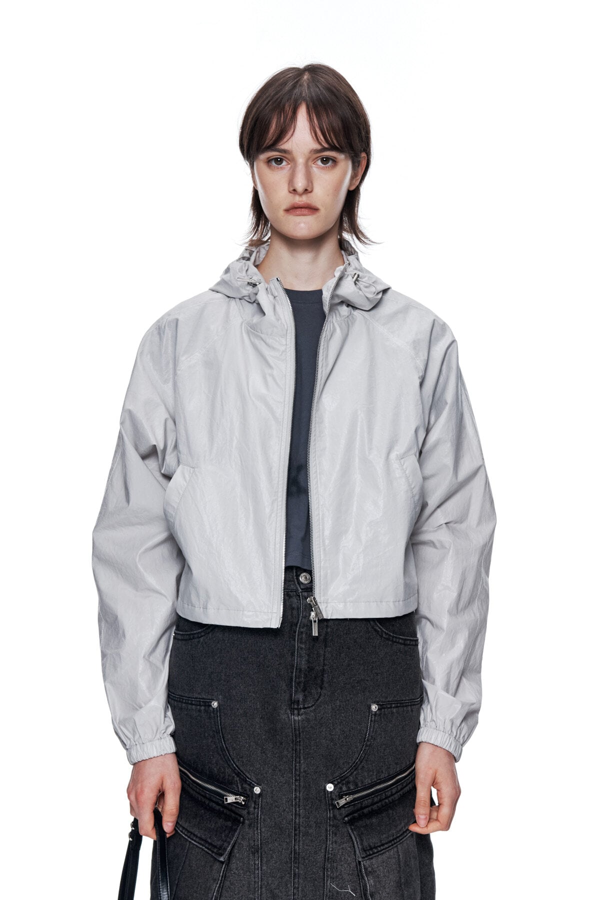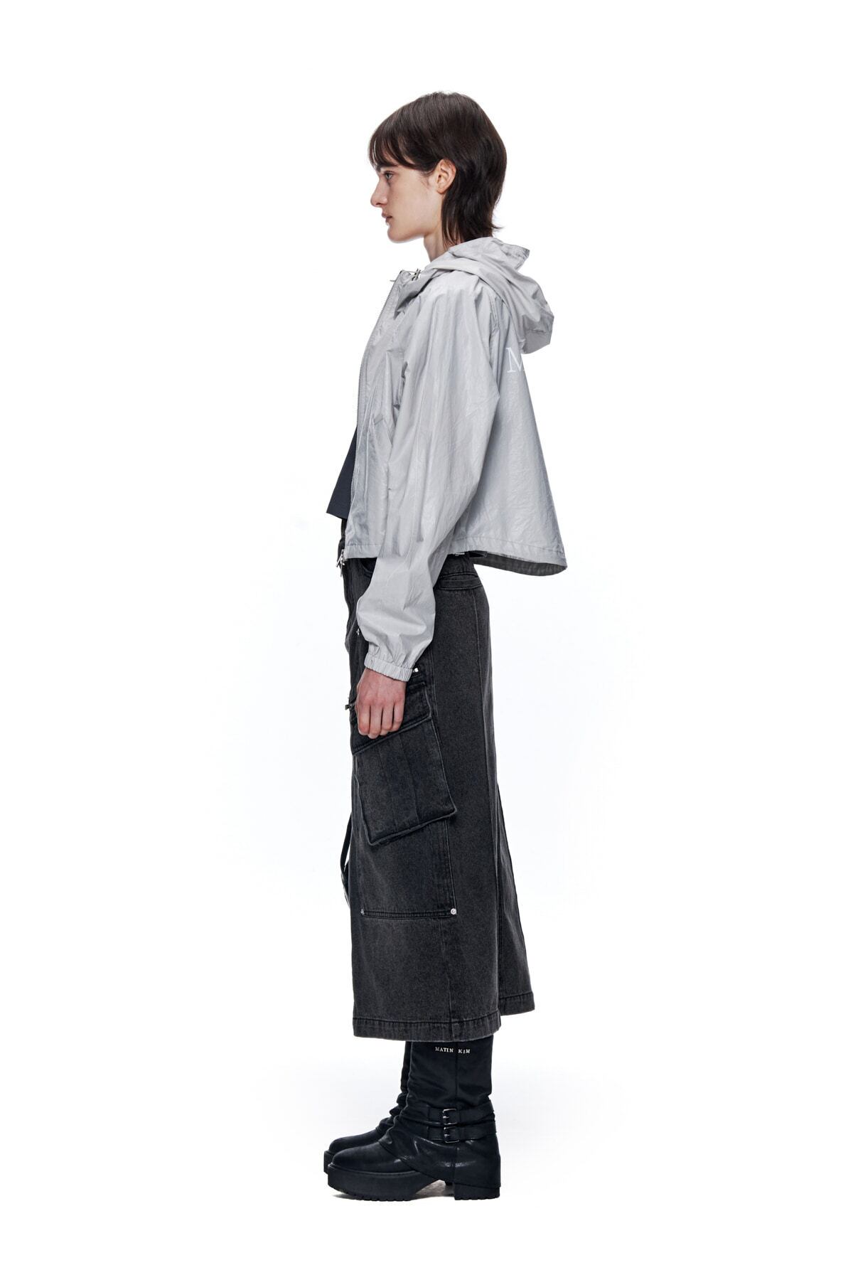 [Matin Kim] MATIN CROP HOODY COATING JUMPER IN GREY