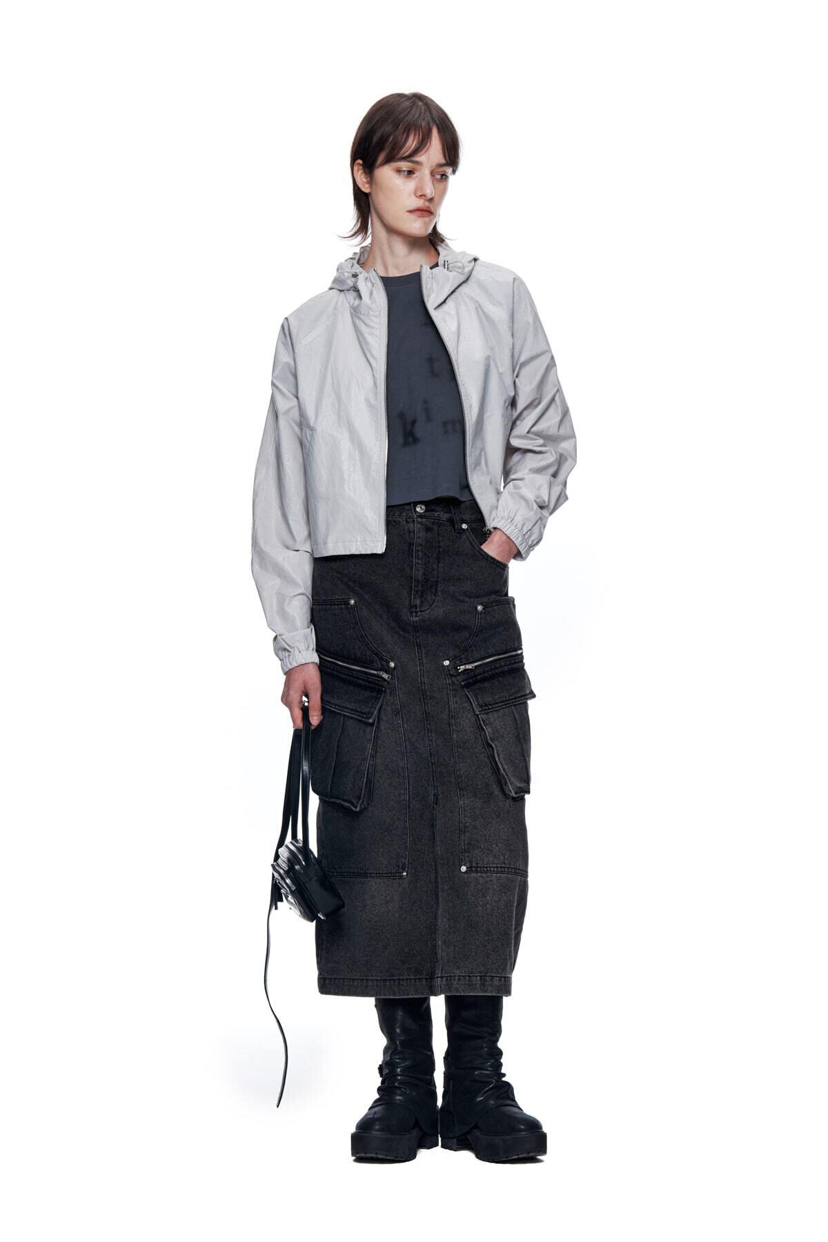 [Matin Kim] MATIN CROP HOODY COATING JUMPER IN GREY 正規品 韓国ブランド 韓国通販 韓国代行 韓国ファッション マーティンキム matinkim 日本 店舗