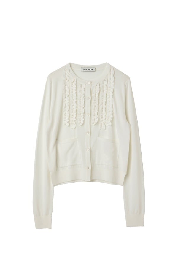 [BOCBOK] TWINKLE FRILL FRILL CARDIGAN (WHITE) 正規品 韓国ブランド 韓国通販 韓国代行 韓国ファッション 日本 店舗 ボクボク bocbok