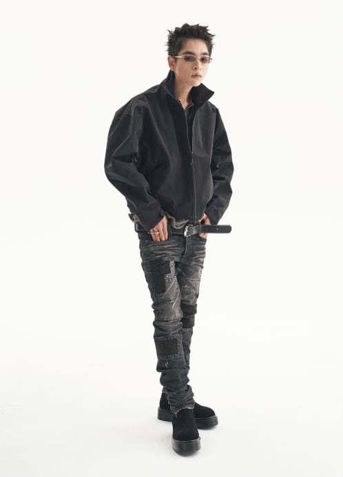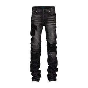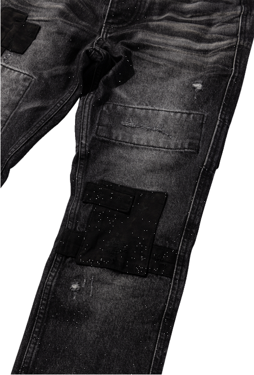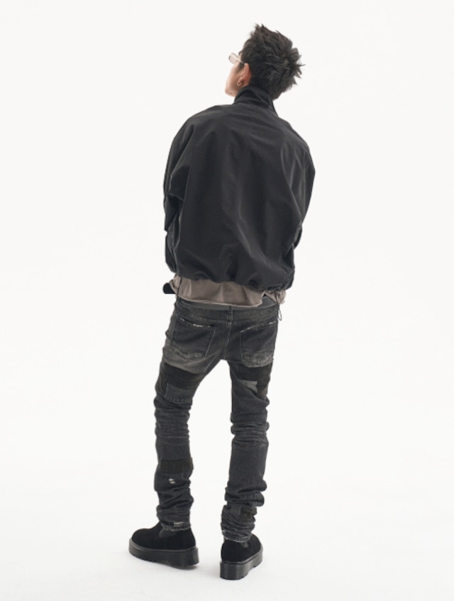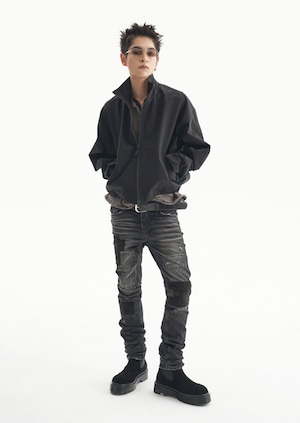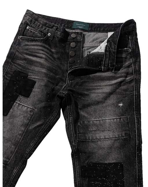 [UNDERMYCAR] Notre Dame Patched Grunge Slim Jeans Washed Black