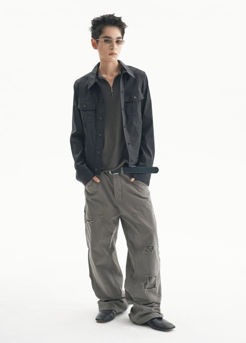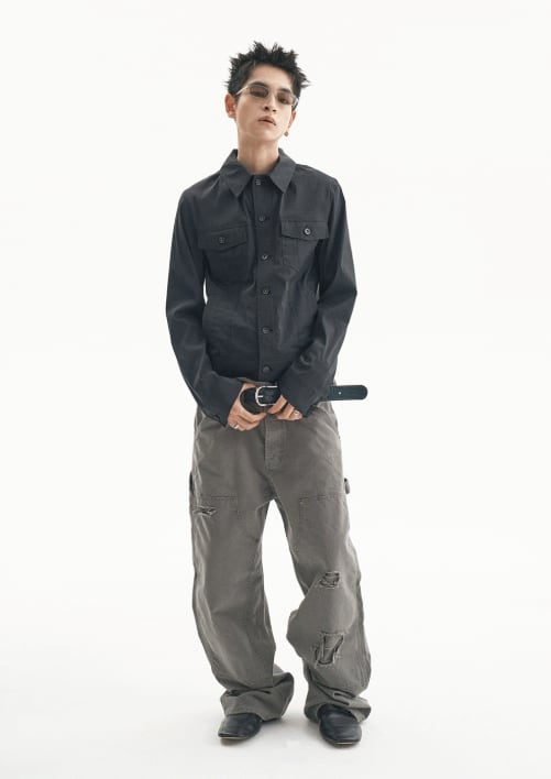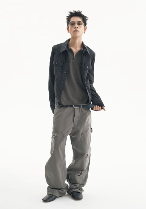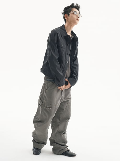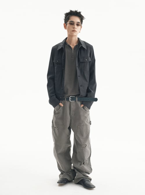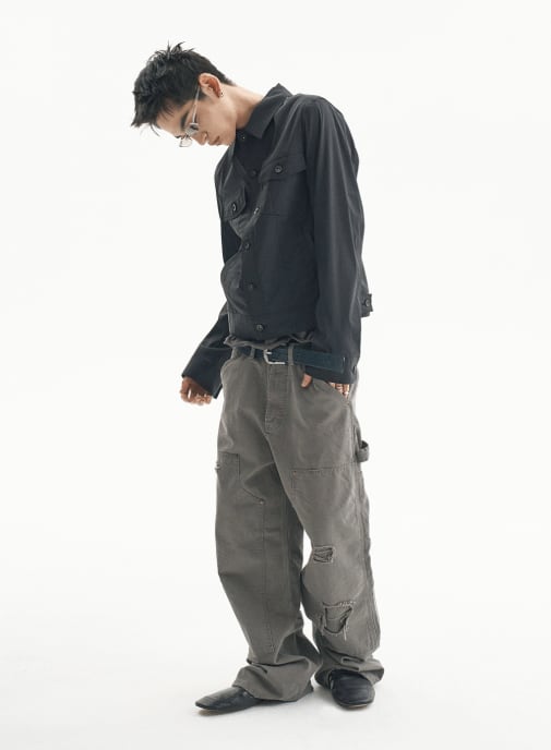 [UNDERMYCAR] Army Canvas Carpenter Pants Khaki Gray