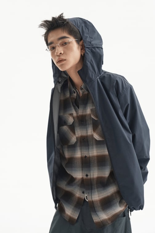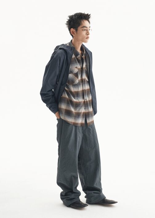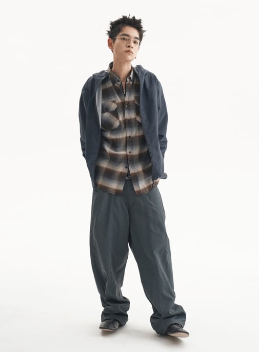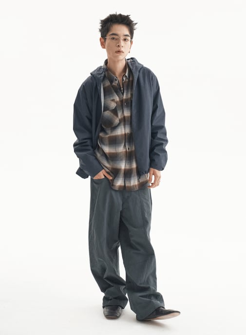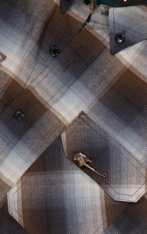 [UNDERMYCAR] Antique Rose Pin Japanese Fabric Glen Check Shirts Mocha Blue 正規品 韓国ブランド 韓国通販 韓国代行 韓国ファッション アンダーマイカー 日本 店舗