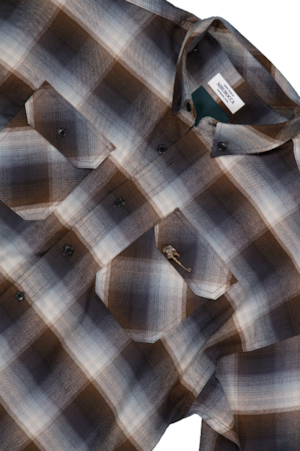 [UNDERMYCAR] Antique Rose Pin Japanese Fabric Glen Check Shirts Mocha Blue
