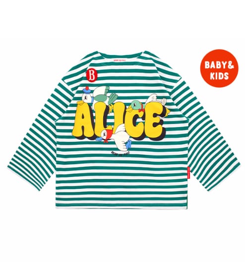 [BEBE DE PINO] Alice birds stripe long sleeve tee