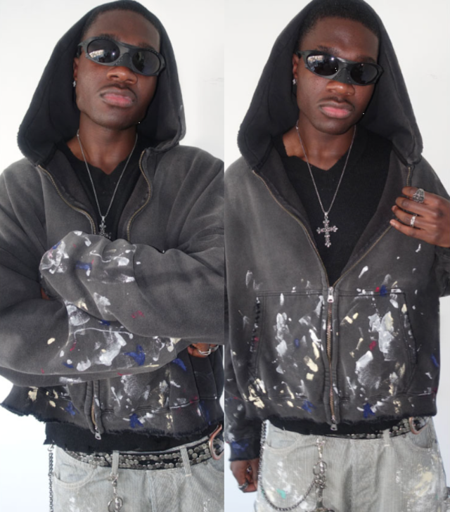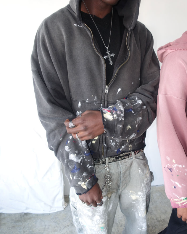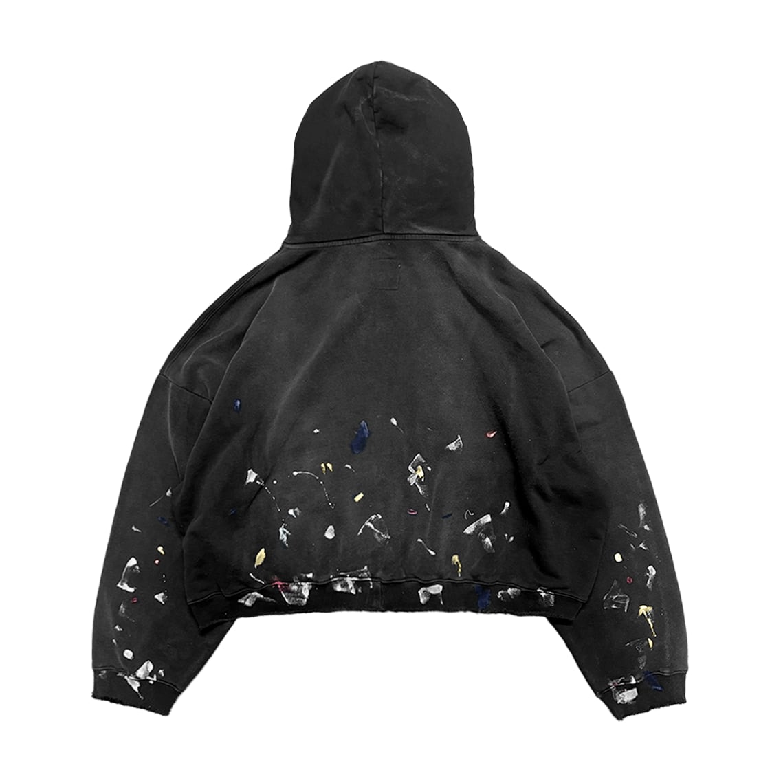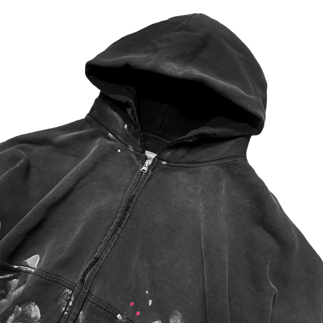 [HOMMLESS] PAINT SPLATTER VTG ZIP HOODIE - WASHED BLACK 正規品 韓国ブランド 韓国通販 韓国代行 韓国ファッション ホームレス ホームリス 日本 店舗