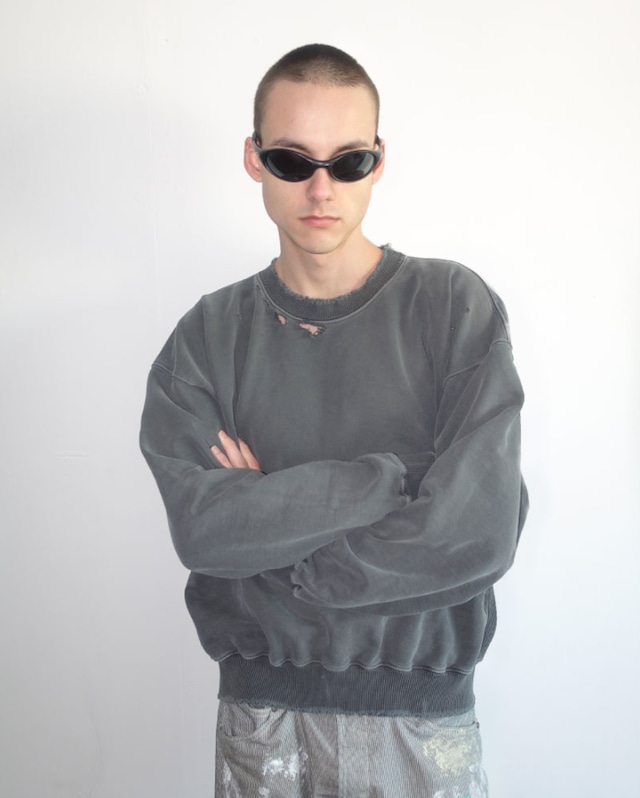 [HOMMLESS] DISTRESSED VTG CREWNECK - WASHED BLACK