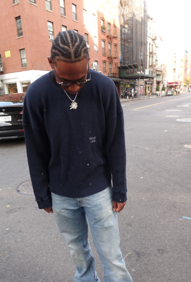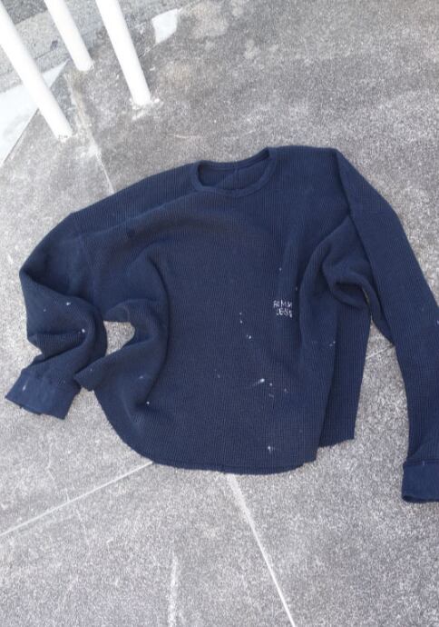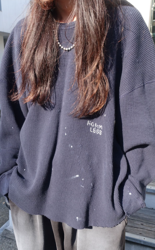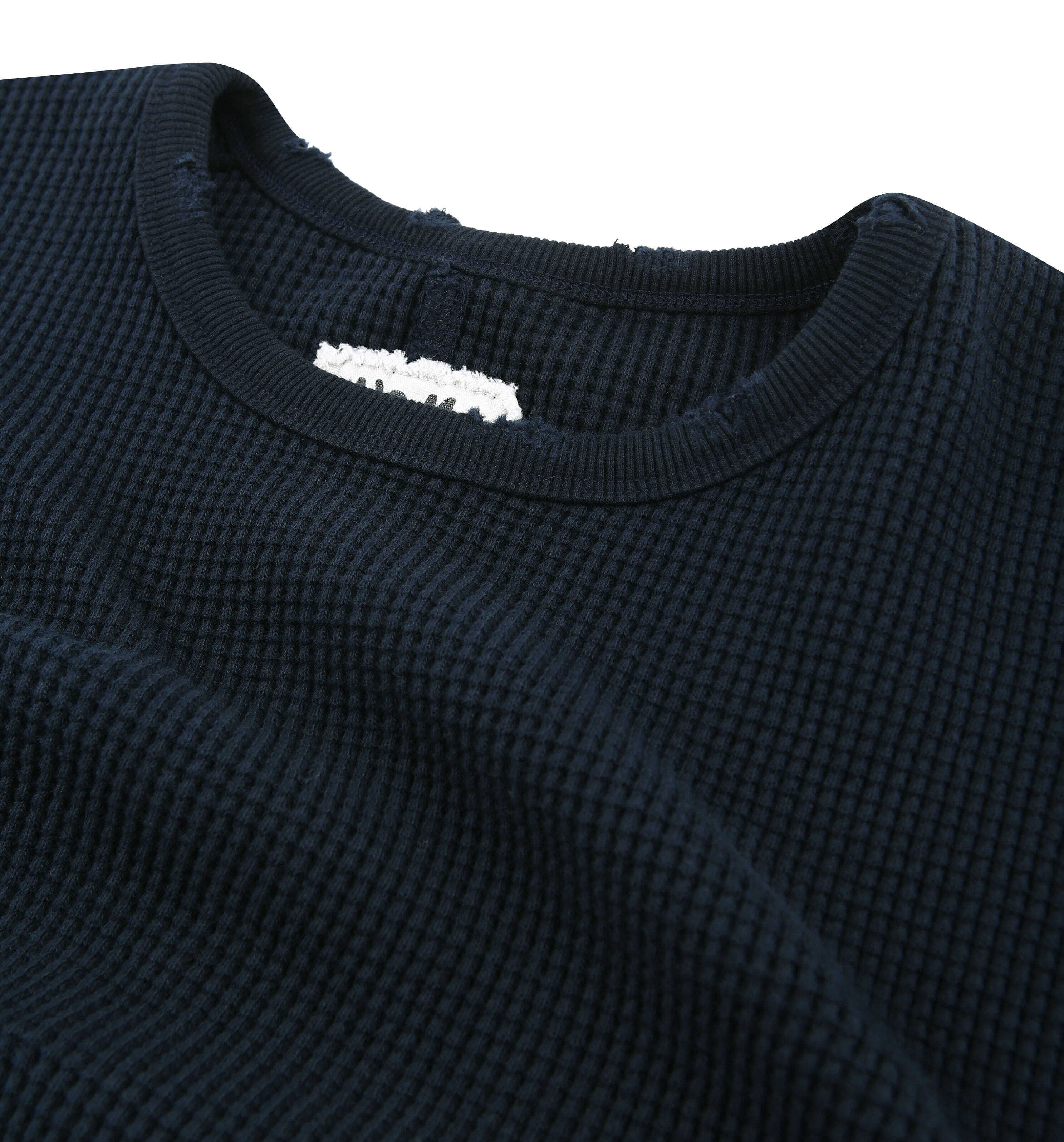 [HOMMLESS] HEAVY WAFFLE L/S DAMAGED - NAVY 正規品 韓国ブランド 韓国通販 韓国代行 韓国ファッション ホームレス ホームリス 日本 店舗