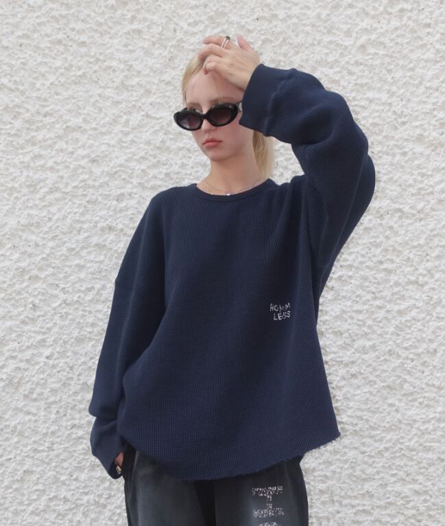 [HOMMLESS] HEAVY WAFFLE L/S - NAVY 正規品 韓国ブランド 韓国通販 韓国代行 韓国ファッション ホームレス ホームリス 日本 店舗