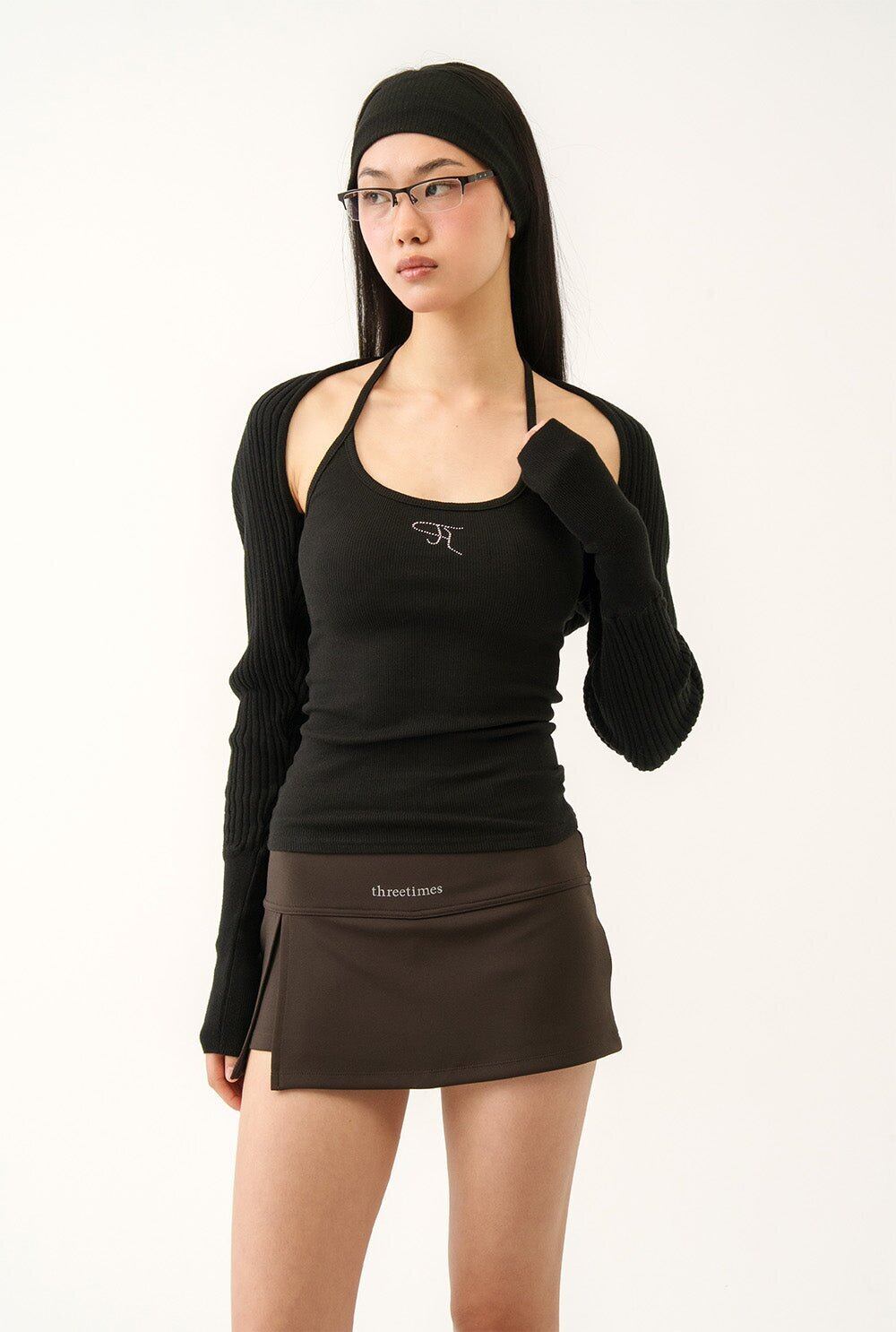 [threetimes] Athletic slit skirt Gray Deep Brown 正規品 韓国ブランド 韓国通販 韓国代行 韓国ファッション スリータイムズ 日本 店舗
