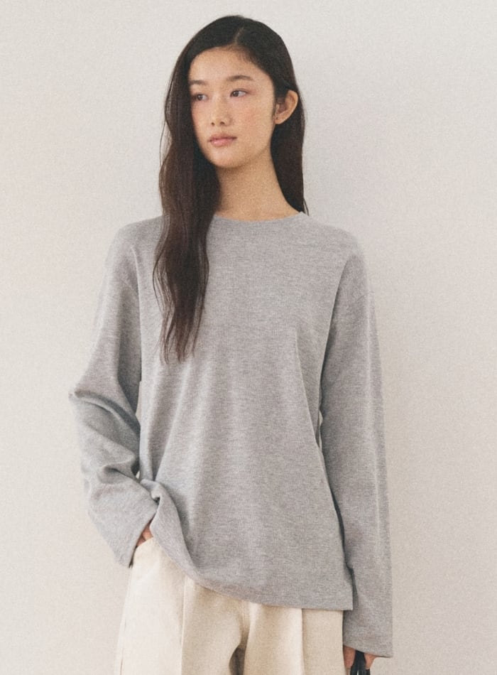 [MANGO MANY PLEASE] CROFFLE OVER FIT TEE_MELANGE GREY