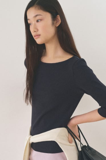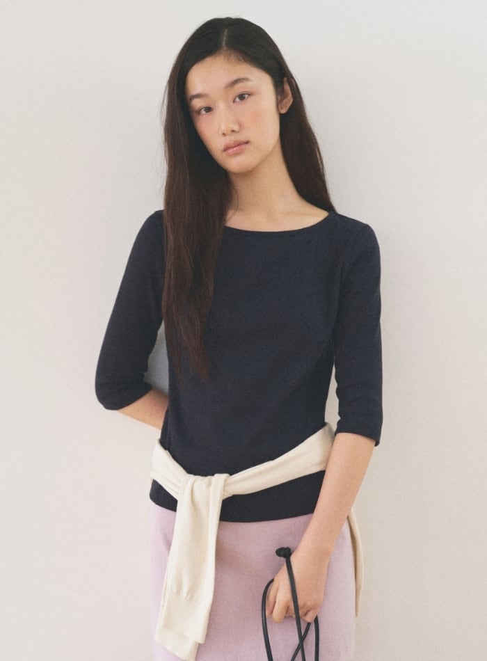[MANGO MANY PLEASE] CROFFLE SLIM TEE_NAVY