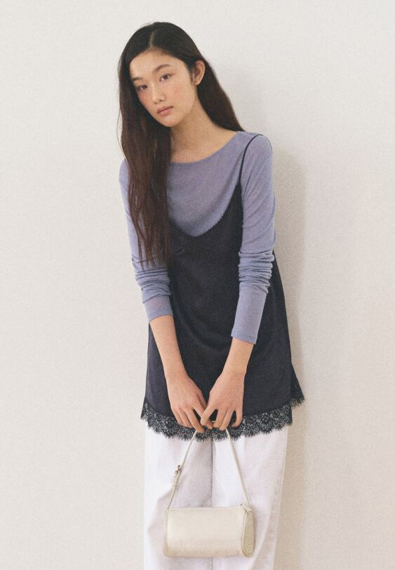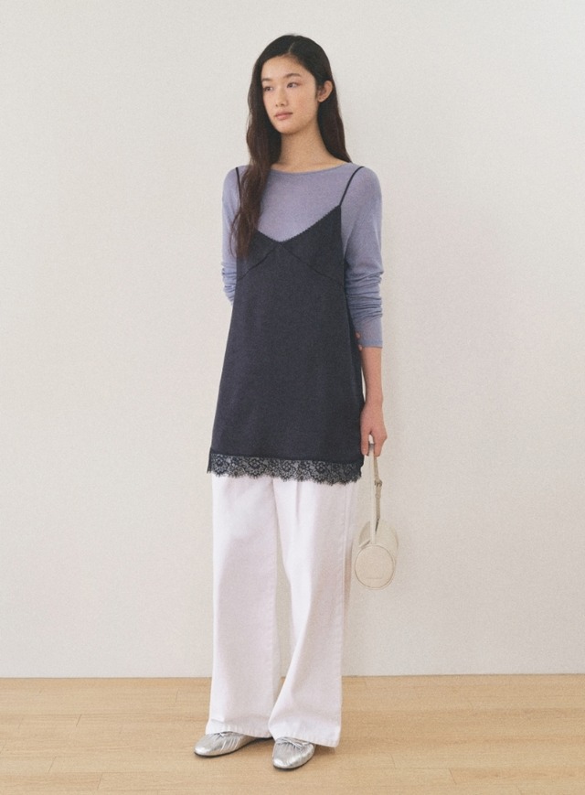 [MANGO MANY PLEASE] SHOWY LACE TOP_NAVY