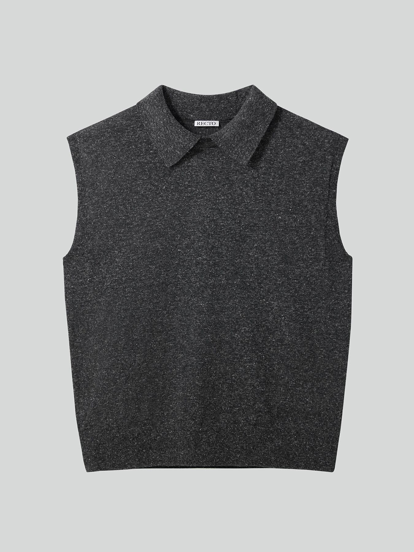 [RECTO][WOMEN] LINEN BLEND POLO KNIT VEST (CHARCOAL GREY) 正規品 韓国ブランド 韓国通販 韓国代行 韓国ファッション レクト 日本 店舗