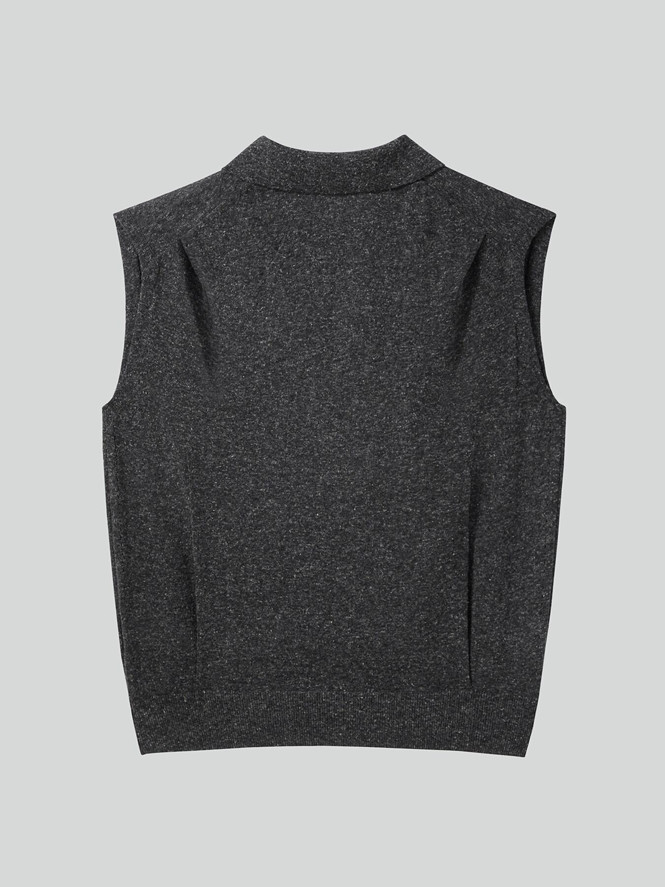 [RECTO] LINEN BLEND POLO KNIT VEST (CHARCOAL GREY)