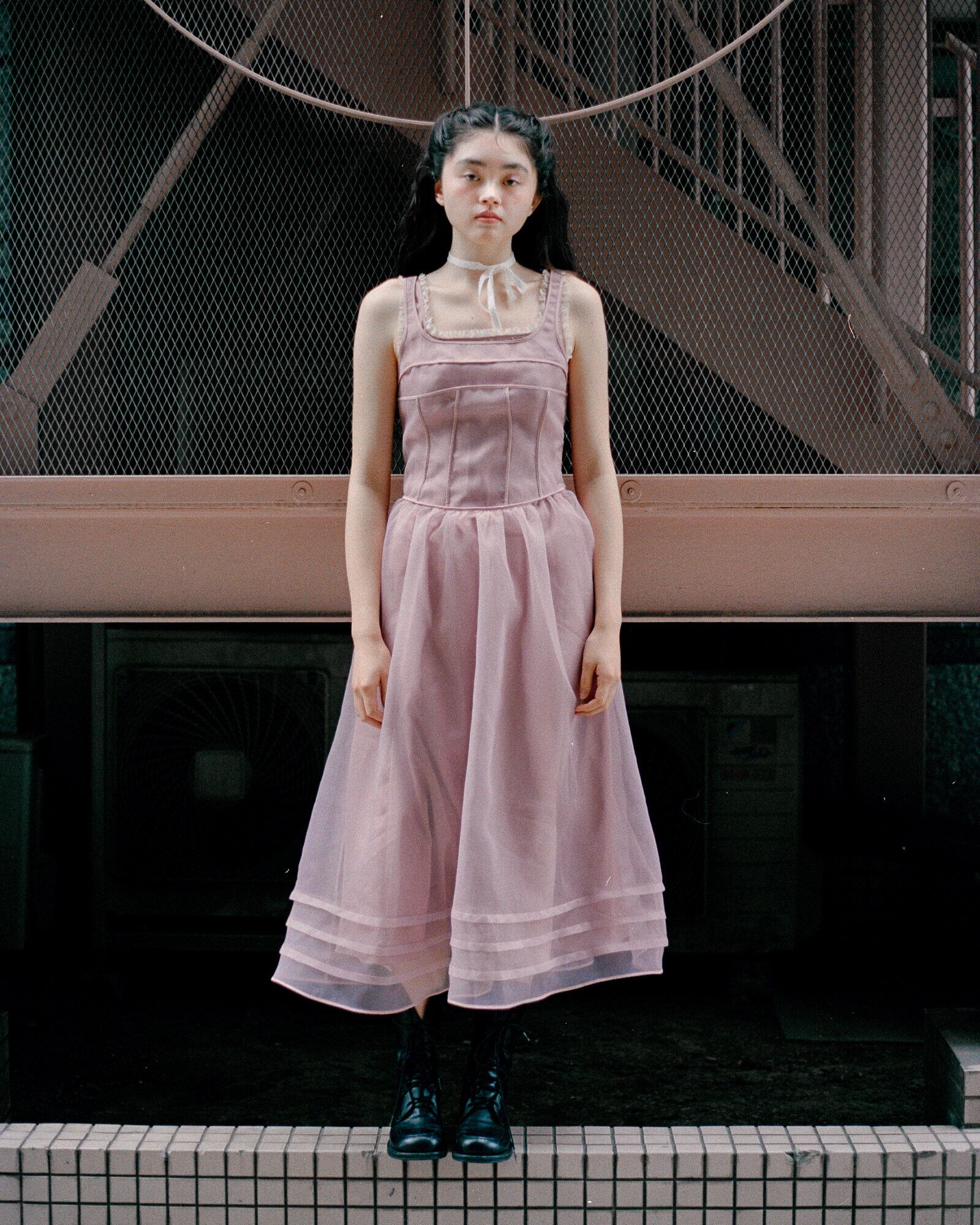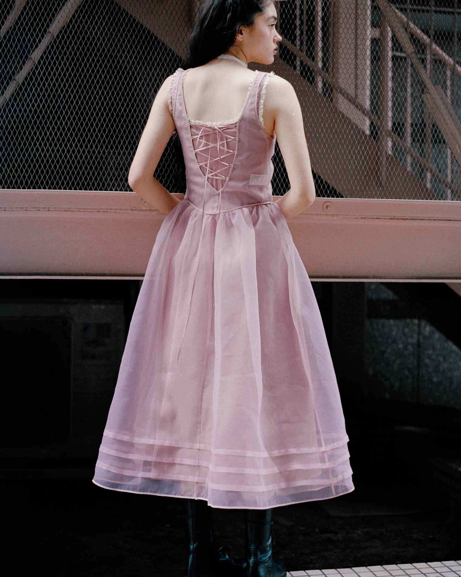 [flétta] flétta 125 Lace up Organza Dress_2 Colors