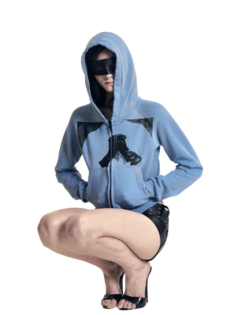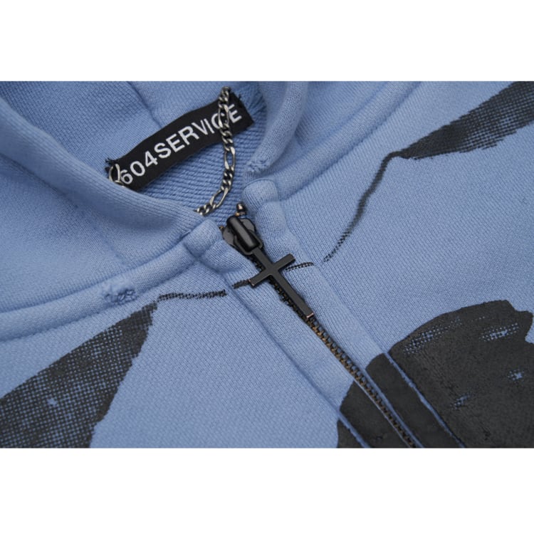 [604SERVICE] CROSS CHARM HOODIE ZIP-UP IN SEAFOAM BLUE