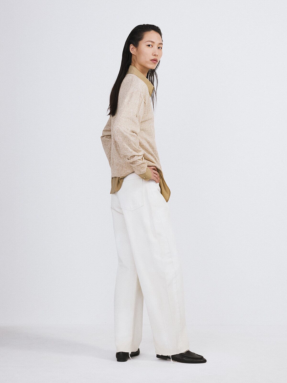 [RECTO] PAINTED DETAIL CURVED DENIM PANTS (ECRU)