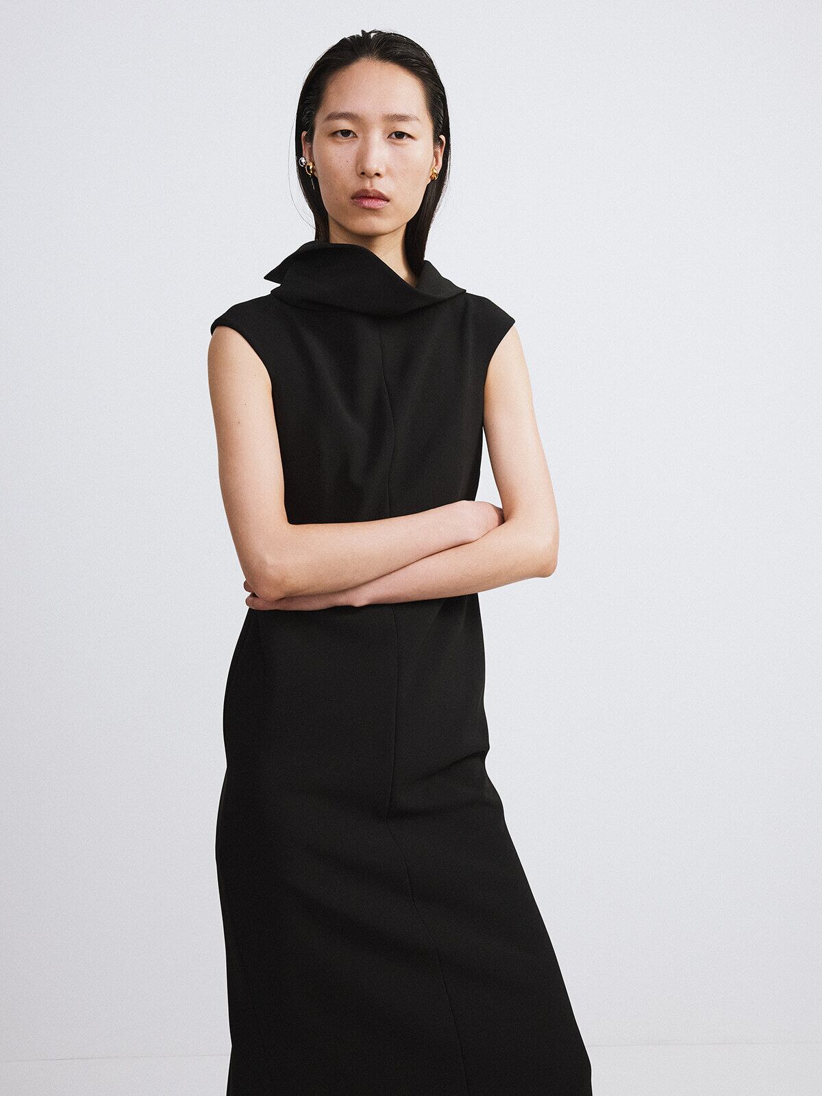 [RECTO] OPEN BACK HIGH NECK DRESS (BLACK)