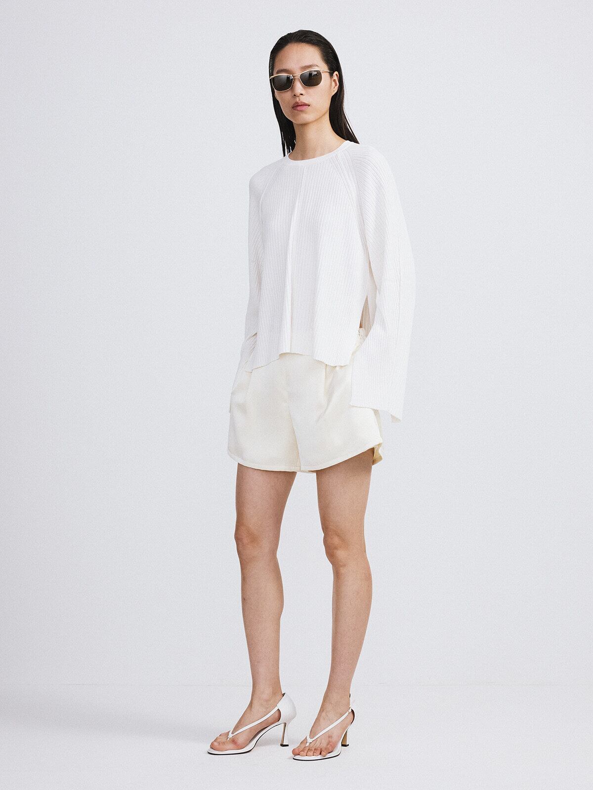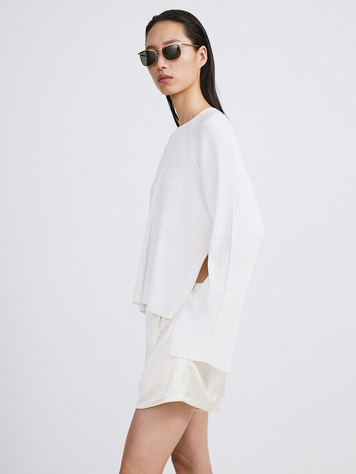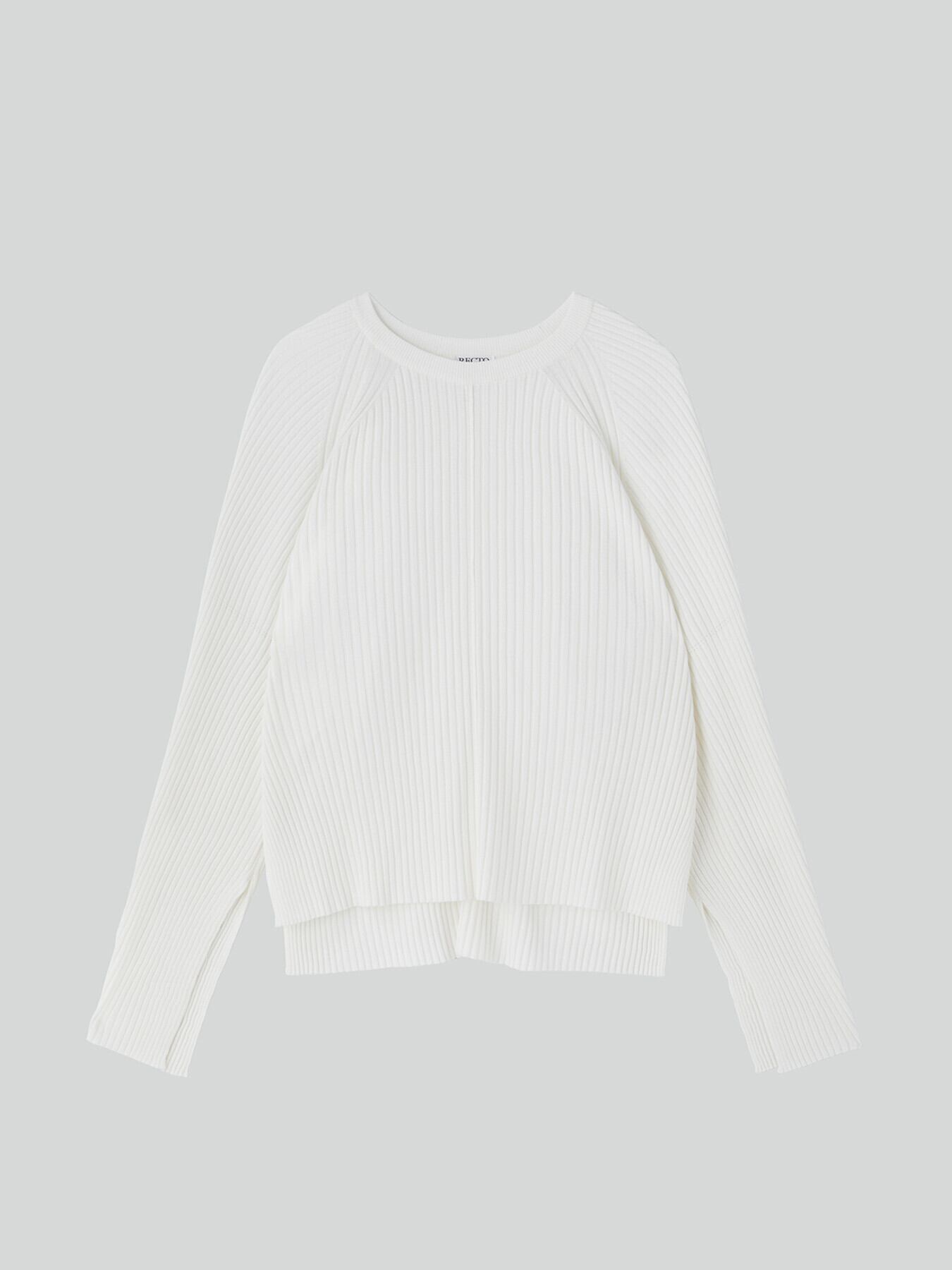 [RECTO] SLIT-CUFFS RIBBED KNIT TOP (IVORY)