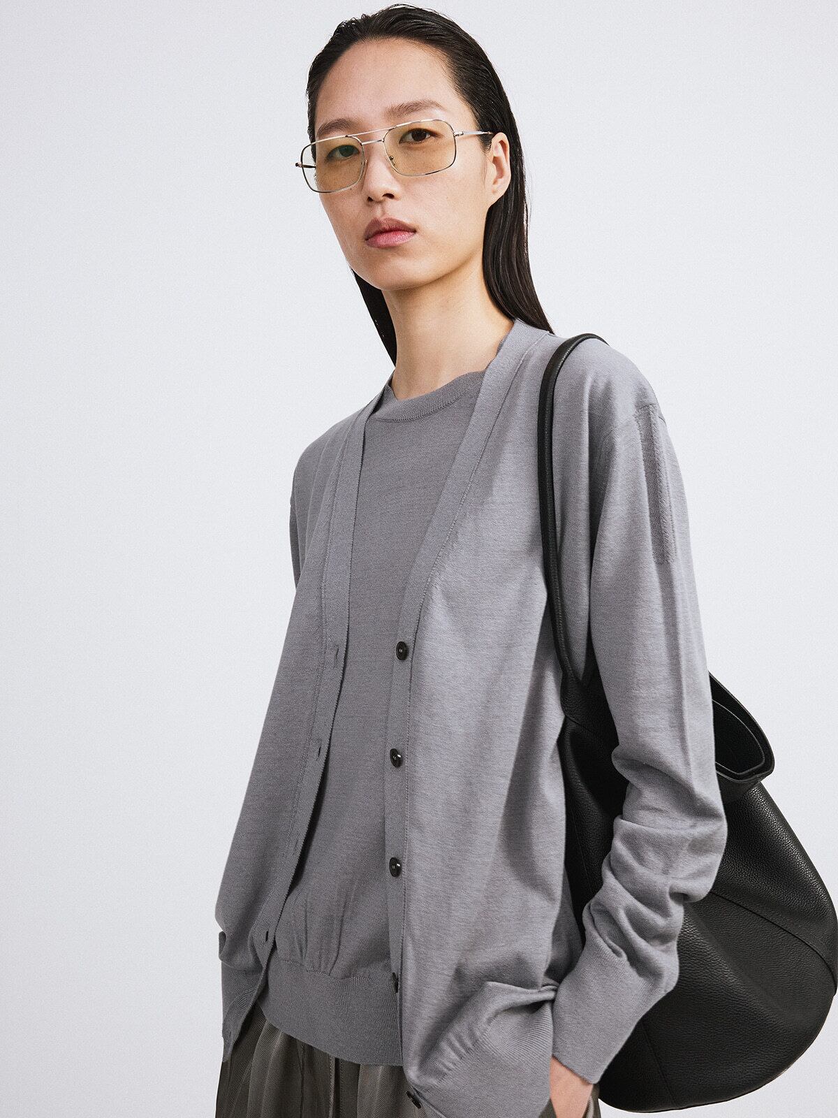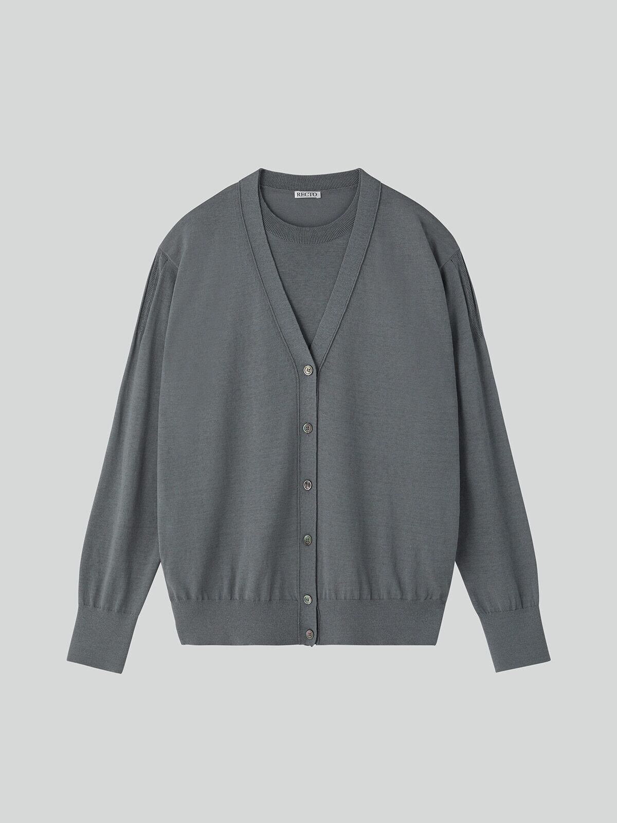 [RECTO] SILK-LINEN BLEND LAYERED KNIT TOP (COOL GREY)