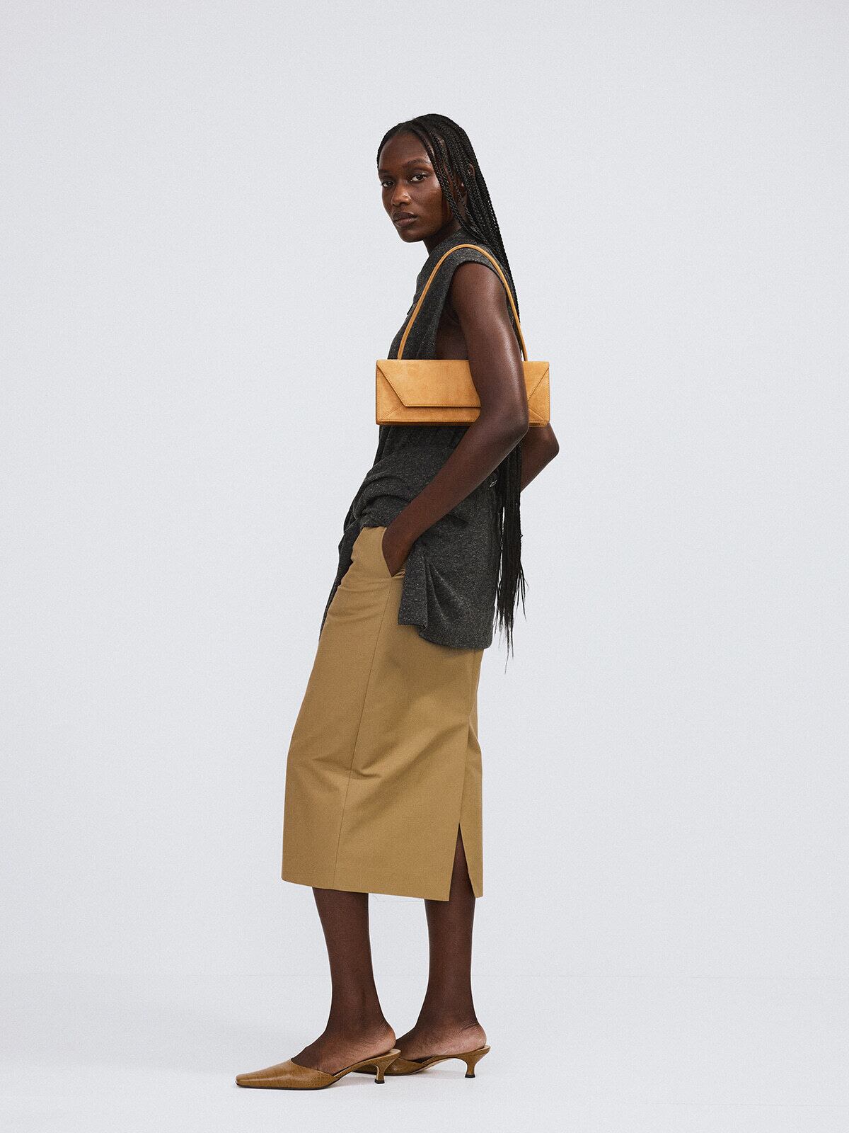 [RECTO] HEAVY COTTON PENCIL SKIRT (KHAKI BEIGE)
