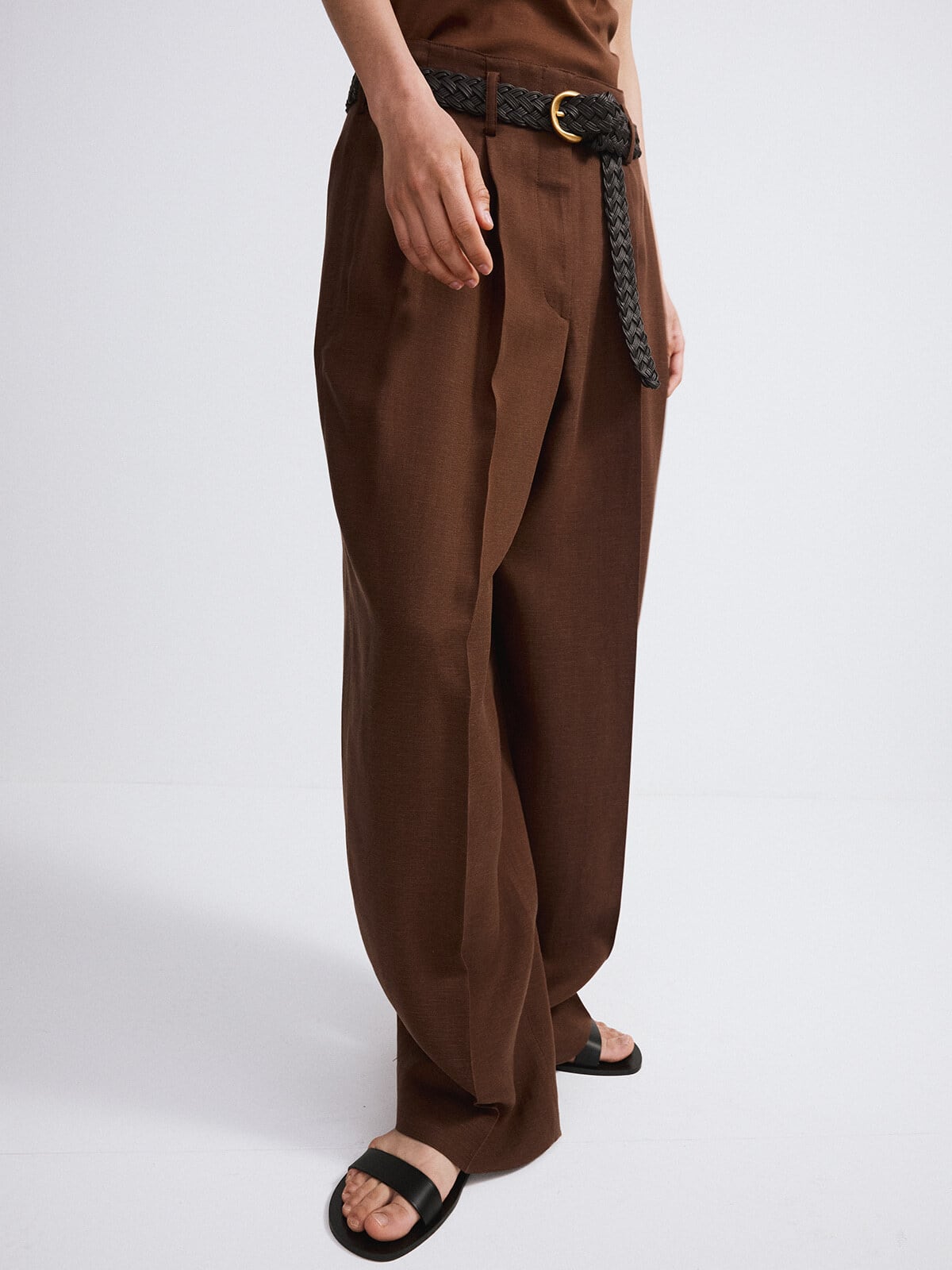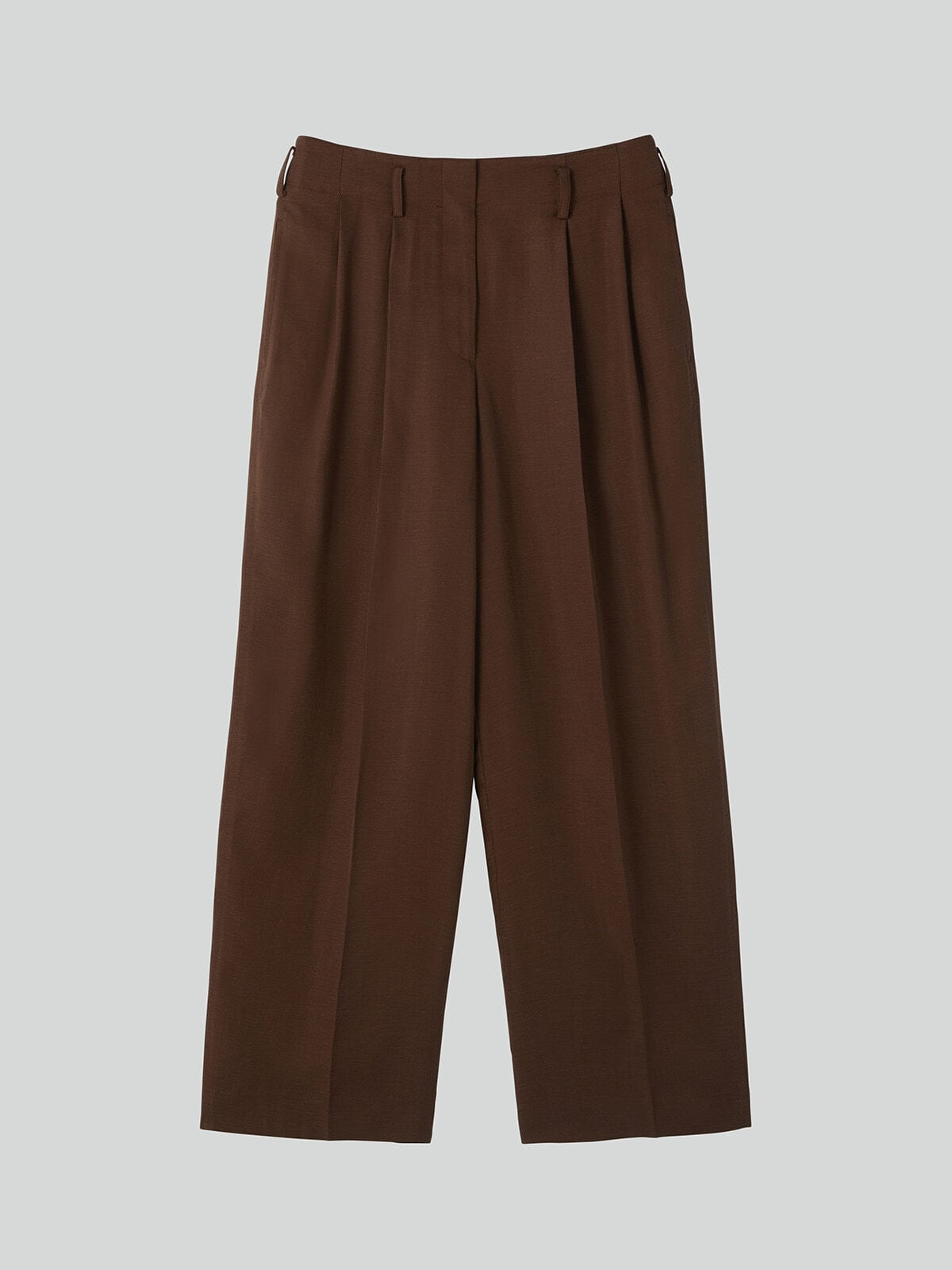 [RECTO] LINEN BLEND PLEATED PANTS (CHOCOLATE BROWN)