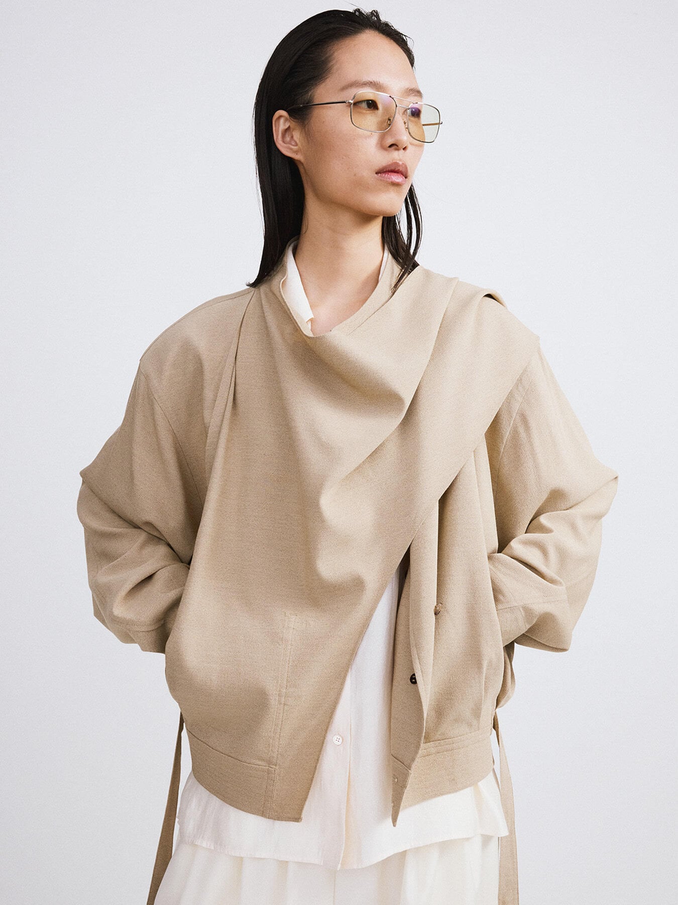 [RECTO][WOMEN] DRAPED SCARF DETAIL JUMPER (SAND BEIGE) 正規品 韓国ブランド 韓国通販 韓国代行 韓国ファッション レクト 日本 店舗