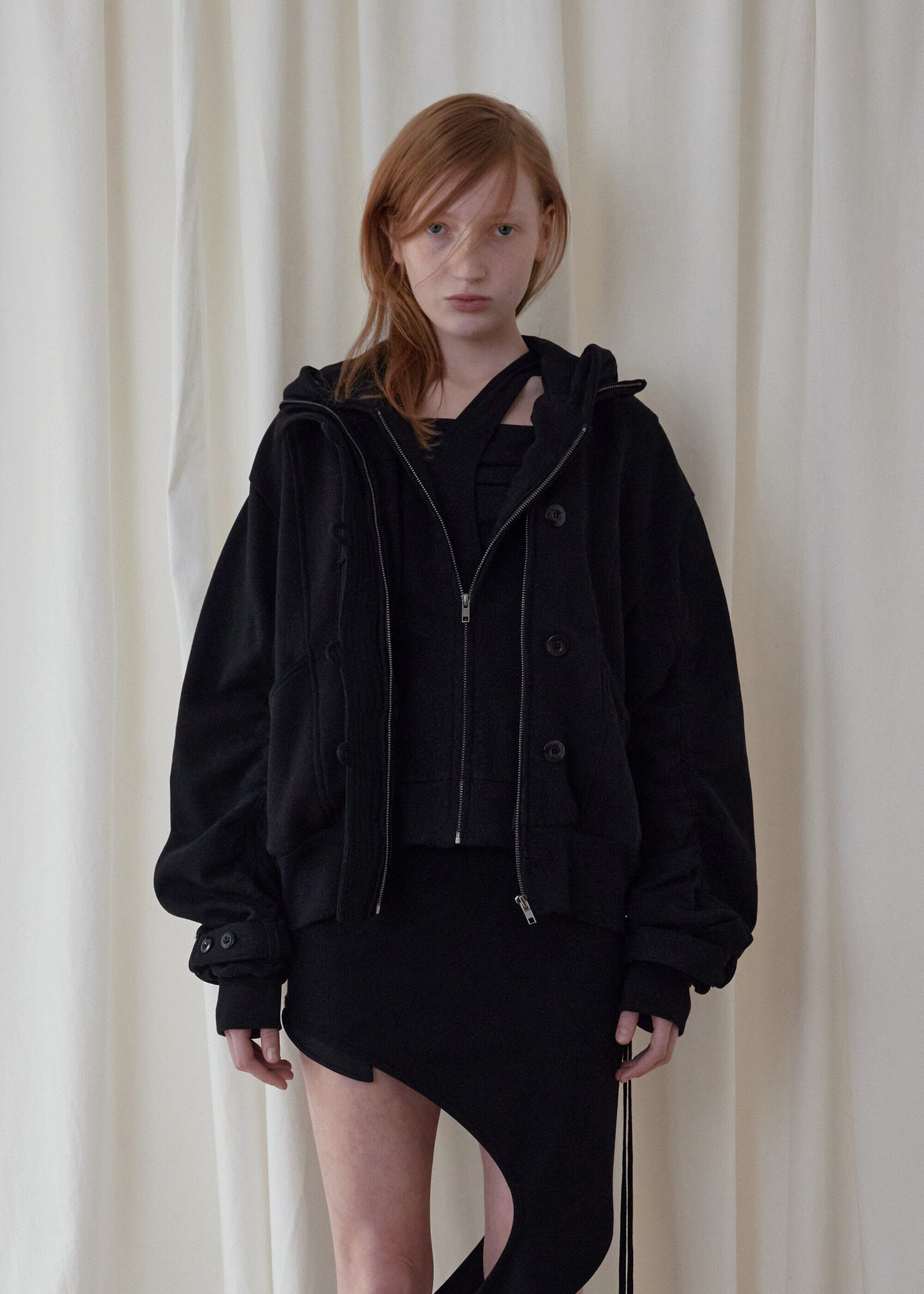 [BOHEMSEO] HOOD DETACHABLE JERSEY ZIP UP, BLACK 正規品 韓国ブランド 韓国通販 韓国代行 韓国ファッション BOHEMIAN SEOUL ボヘミアンソウル 日本 店舗