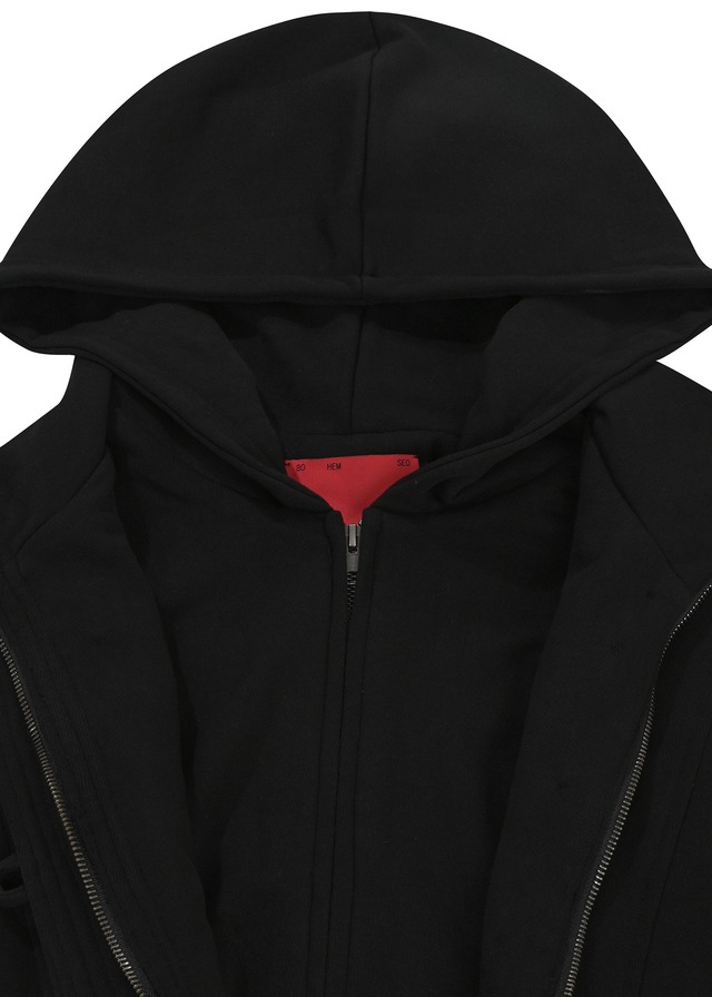 [BOHEMSEO] HOOD DETACHABLE JERSEY ZIP UP, BLACK