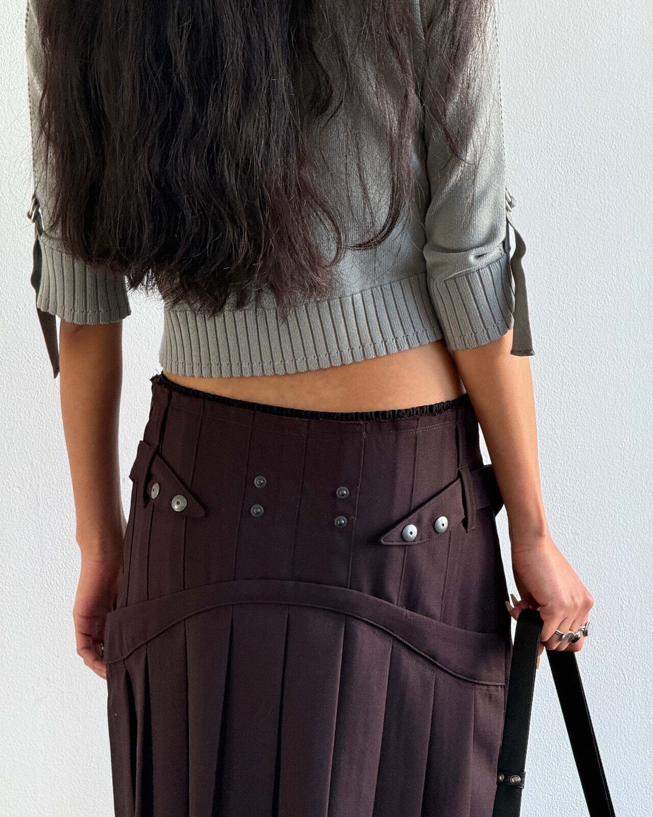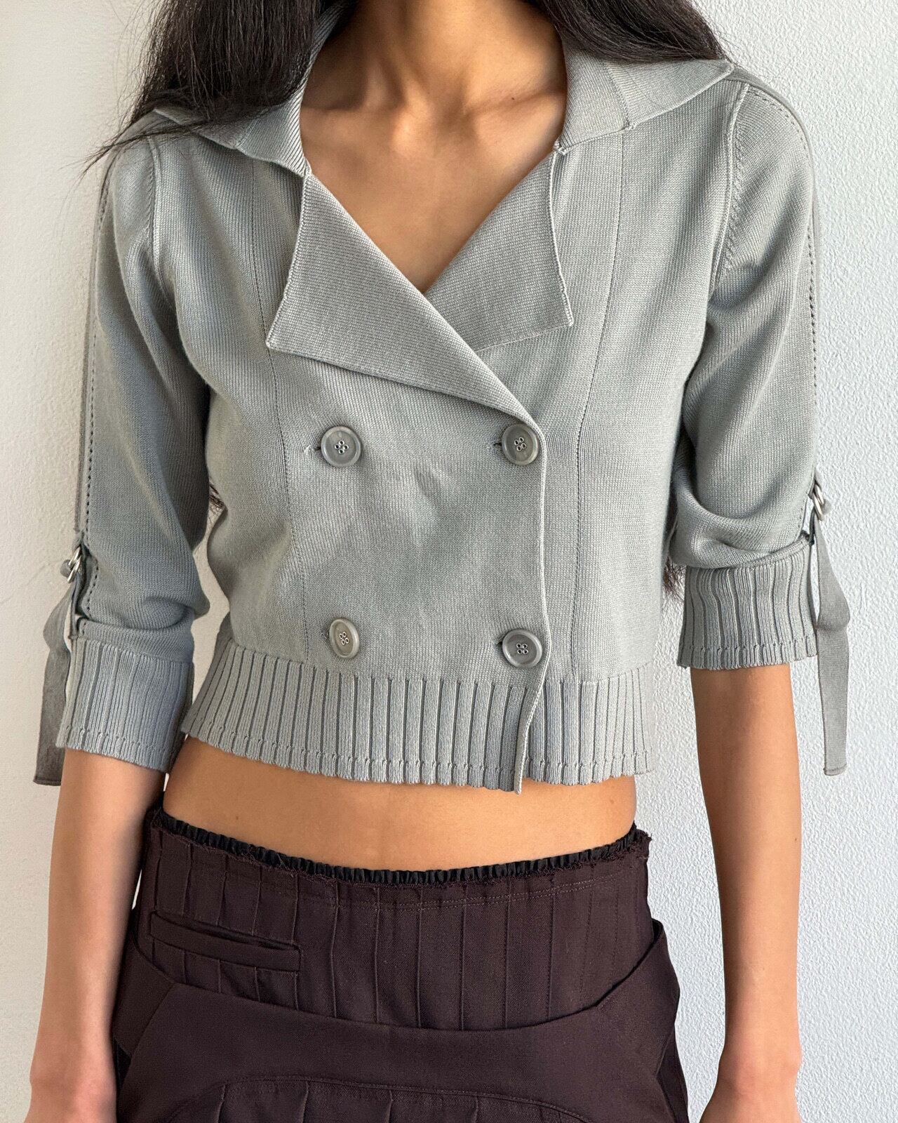 [MSCHF] DOUBLE BUTTON CROP CARDIGAN_KHAKI GREY