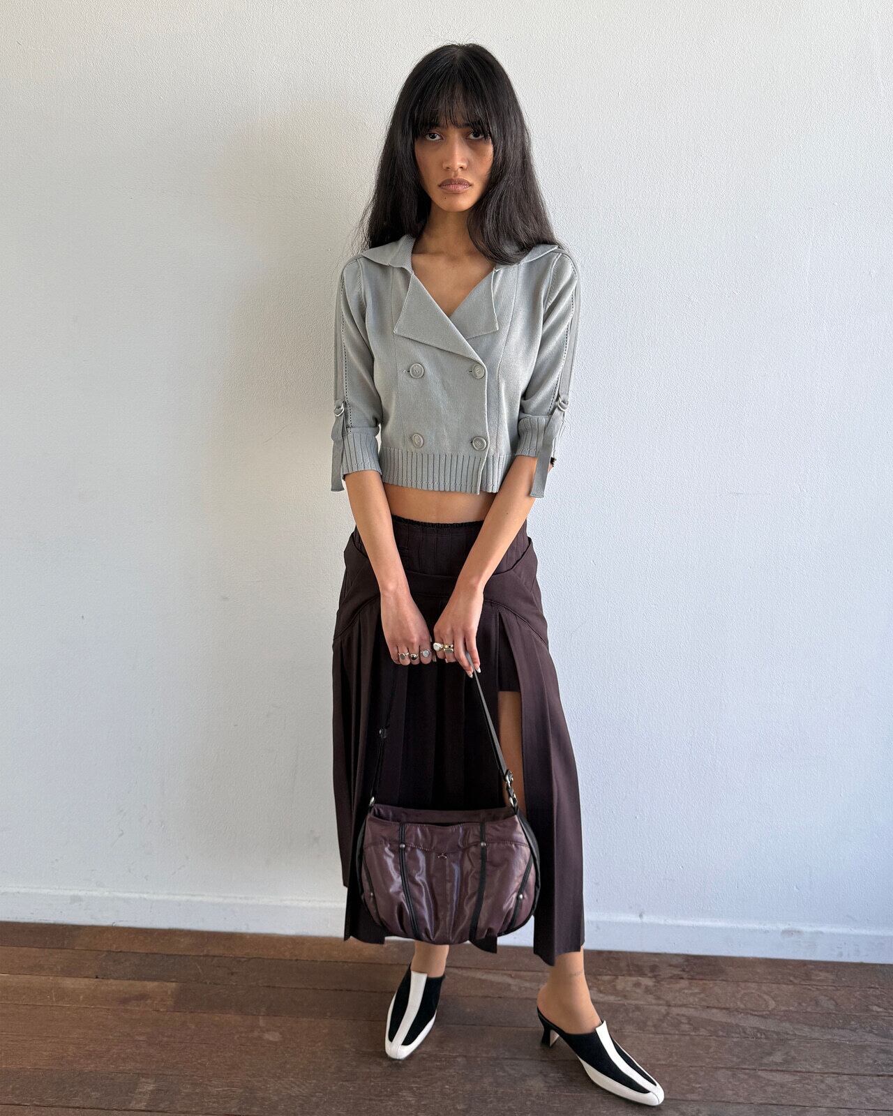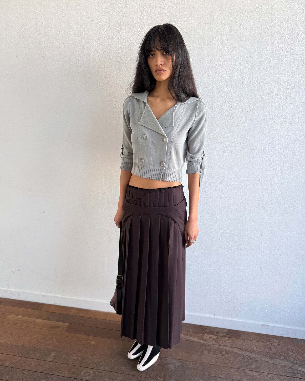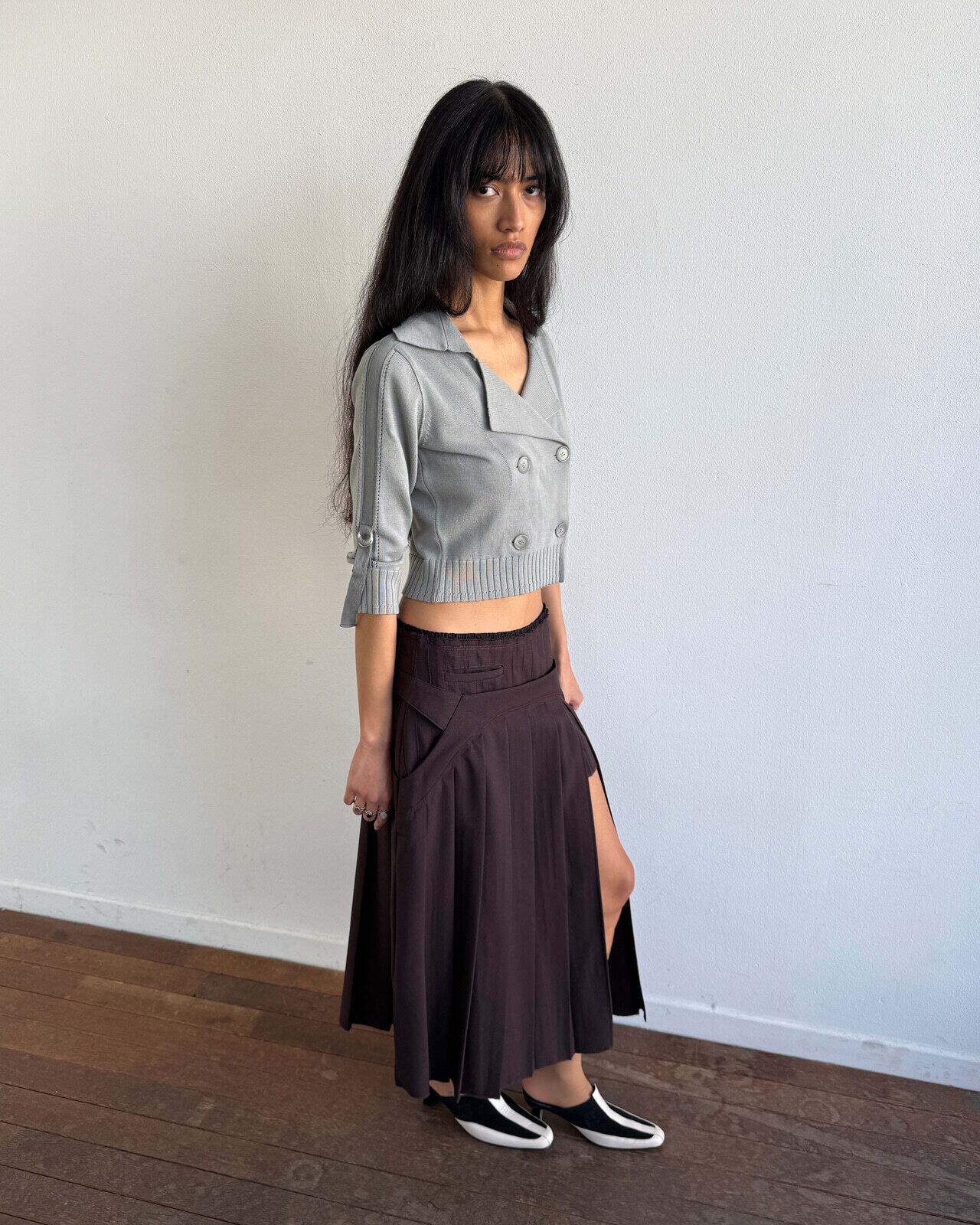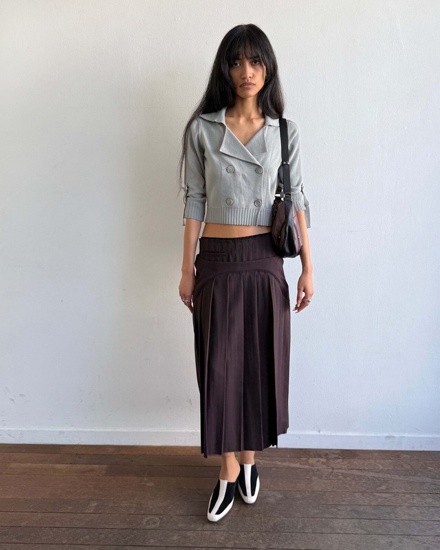 [MSCHF] DOUBLE BUTTON CROP CARDIGAN_KHAKI GREY ミスチーフ 正規品 韓国ブランド 韓国ファッション 韓国代行 韓国通販 mischief 日本 店舗
