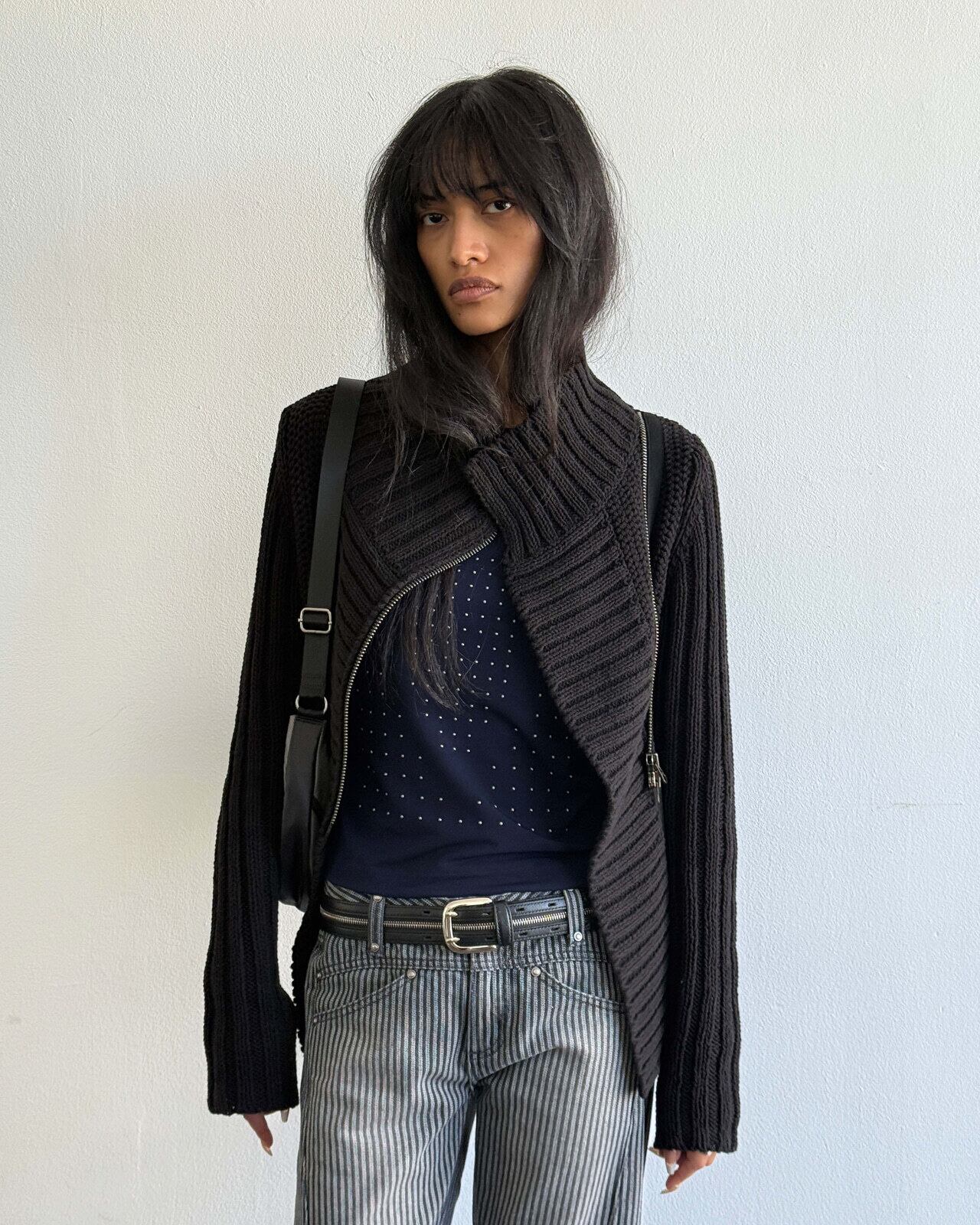 [MSCHF] RIBBED COLLAR ZIP SWEATER_BLACK