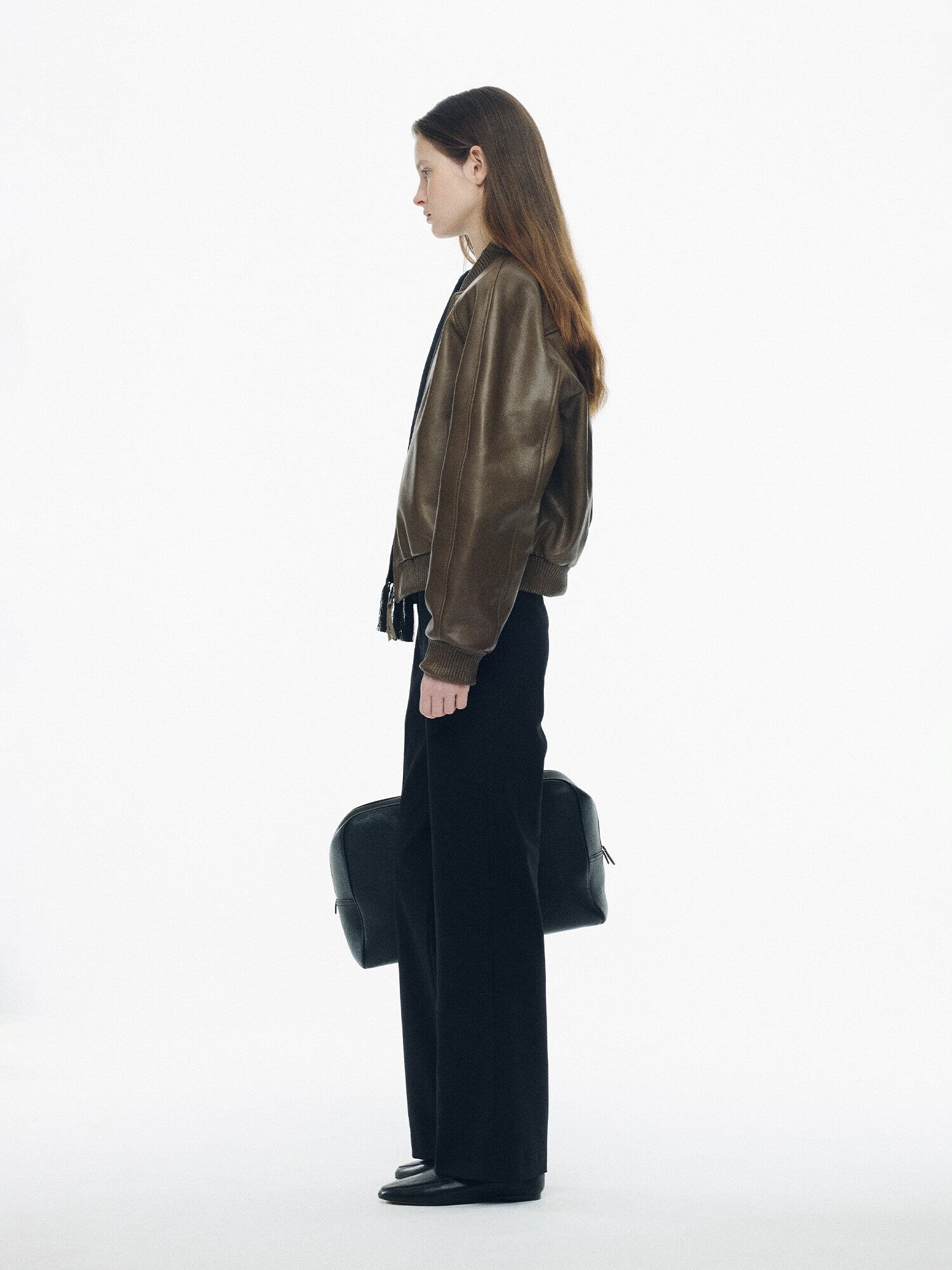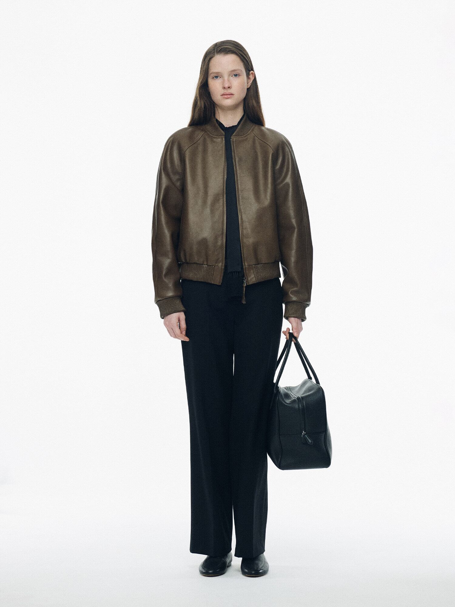 [NOTHING WRITTEN] Roche lambskin bomber jacket (Olive)