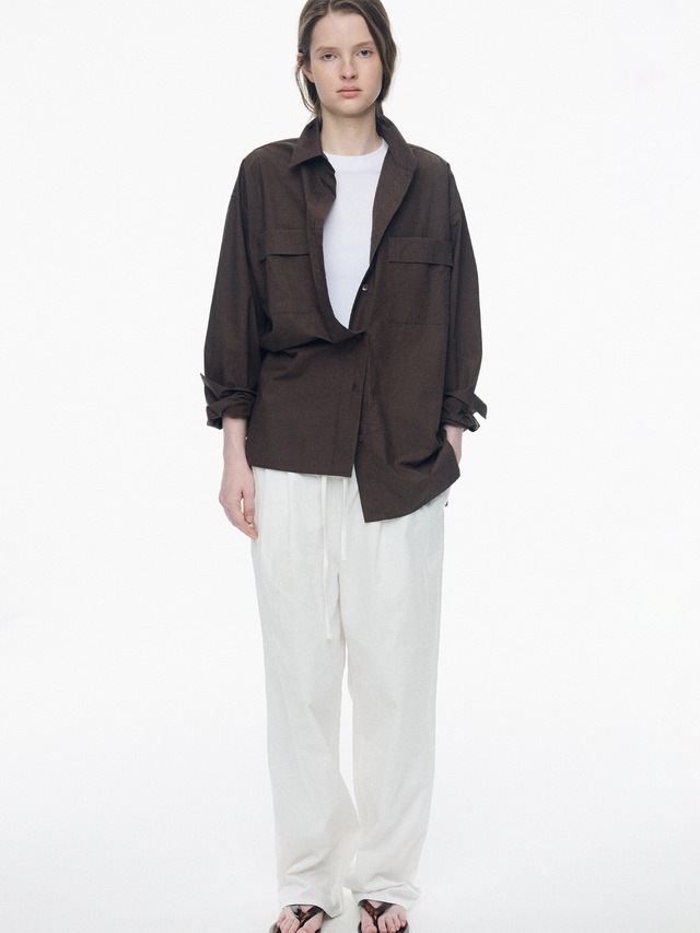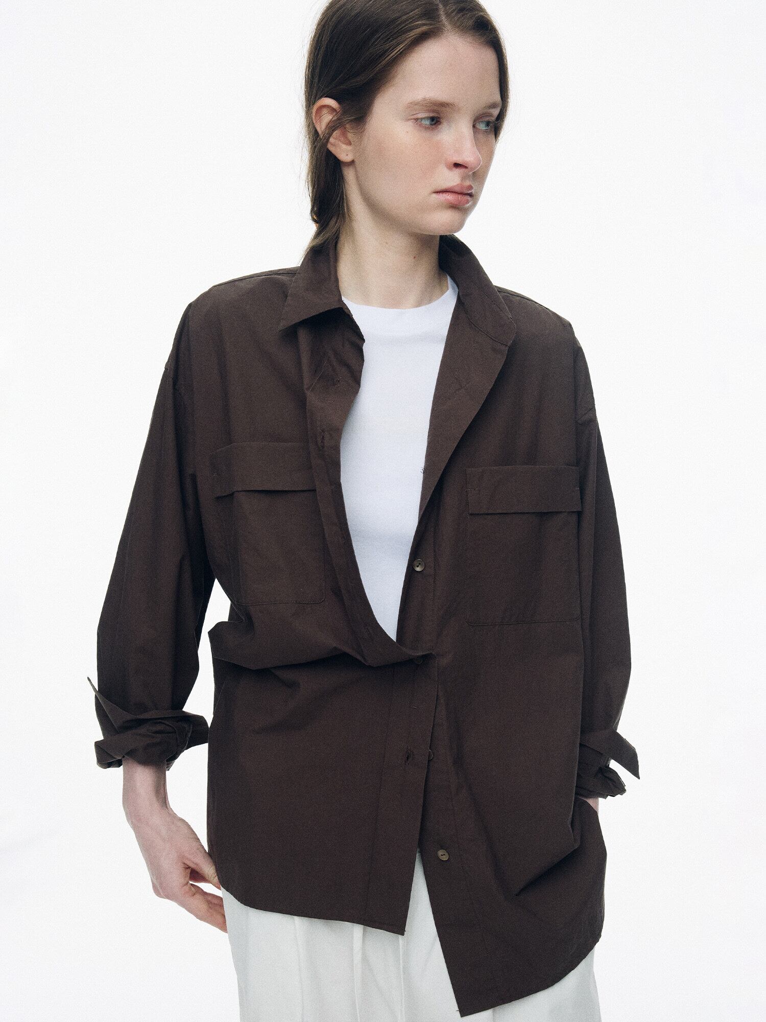 [NOTHING WRITTEN] Double pocket cotton shirt (Dark brown)
