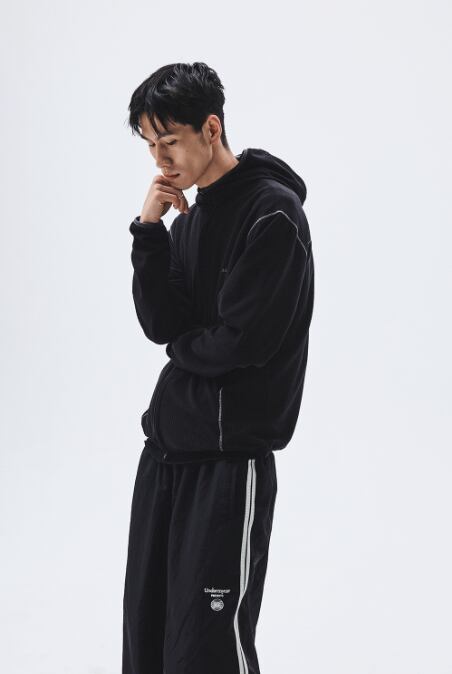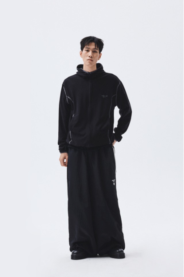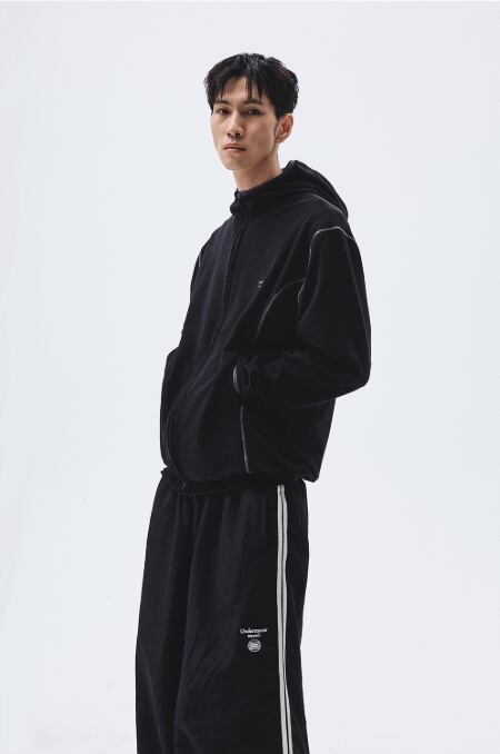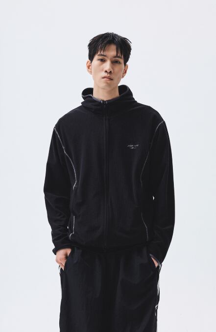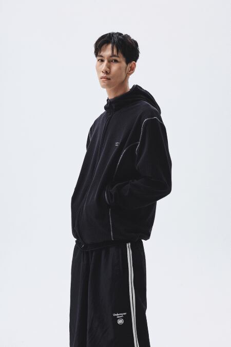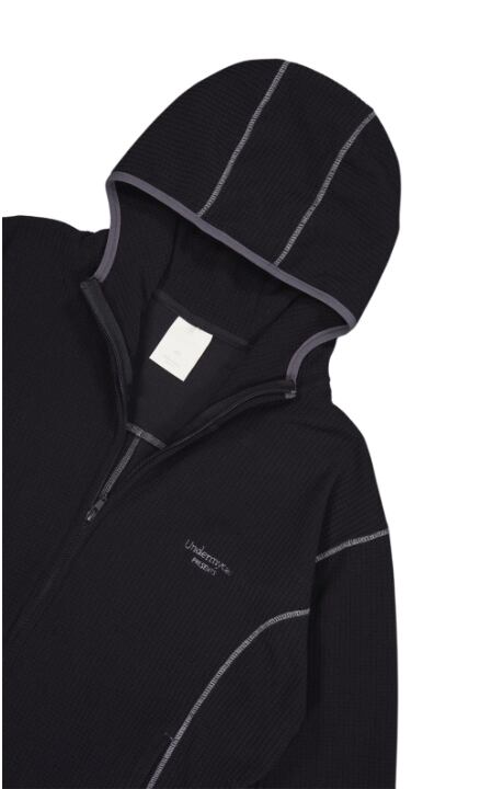 [UNDERMYCAR] Mu.164 Classic Logo Waffle Warm Hood Zip-Up Black