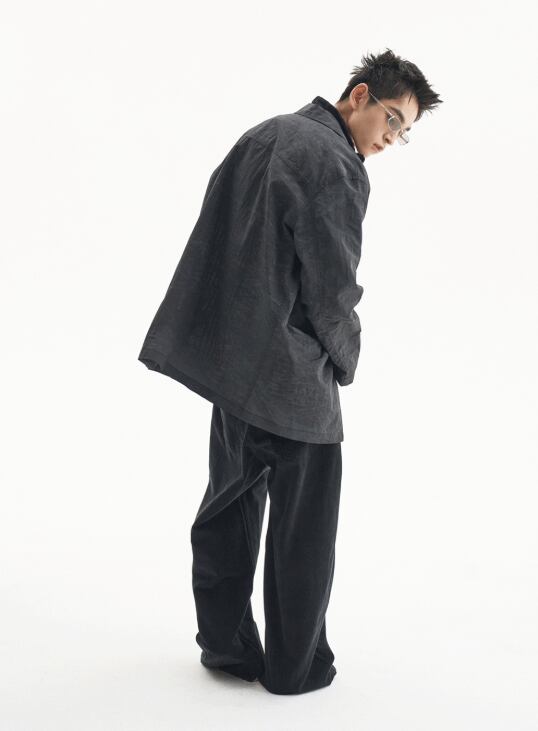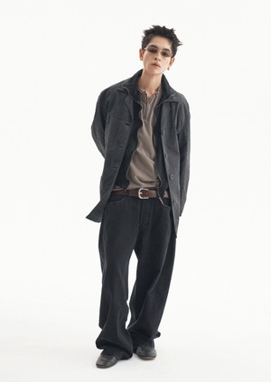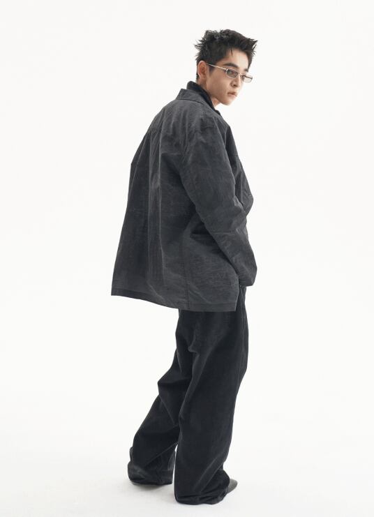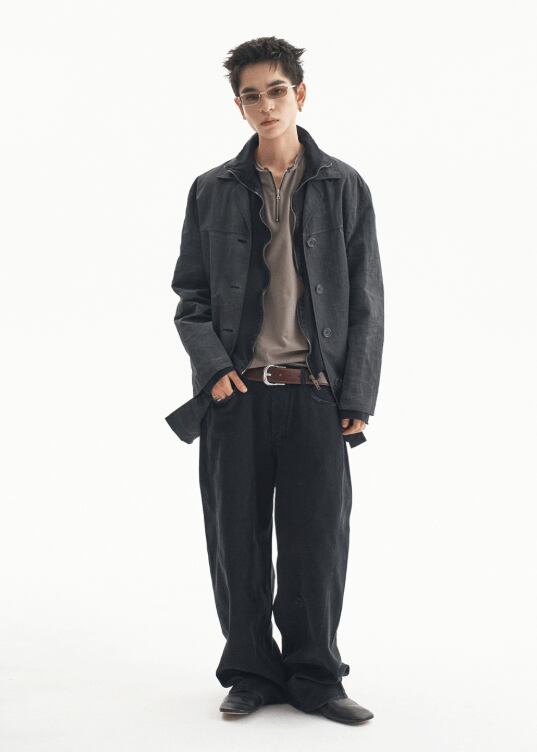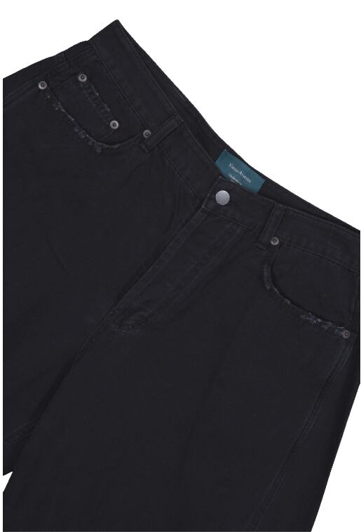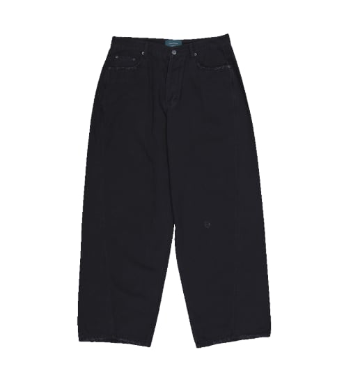 [UNDERMYCAR] Offset Curved Pants Jet Black