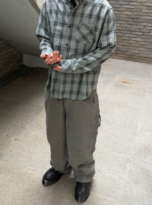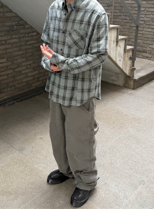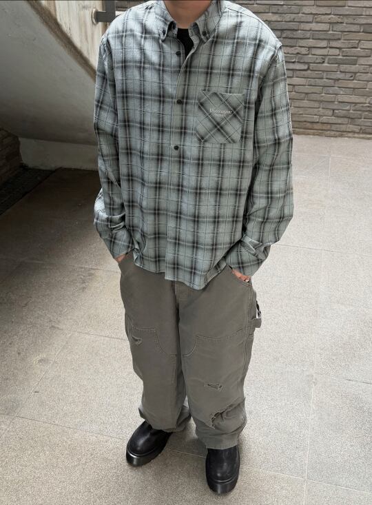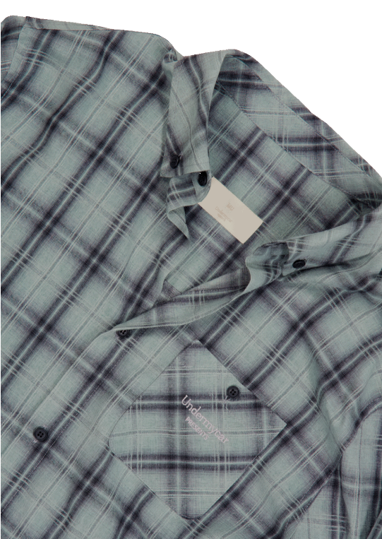 [UNDERMYCAR] Mu.167 Classic Logo Semi-Regular Fit Pocket Check Shirts Khaki