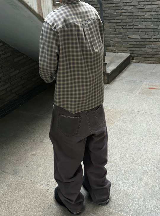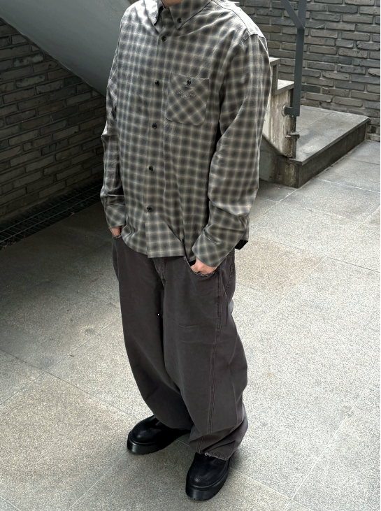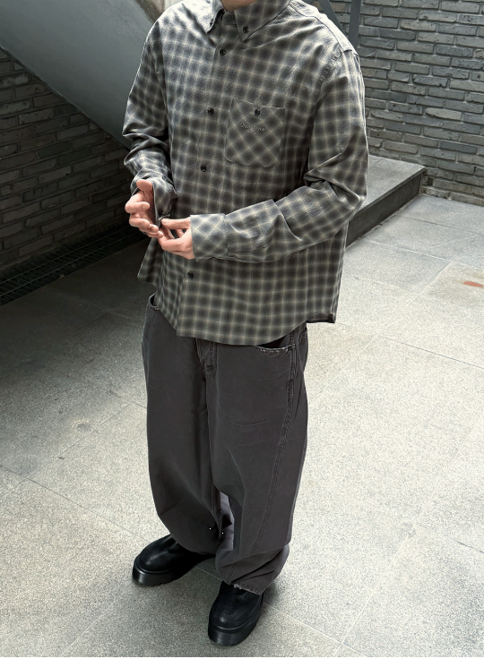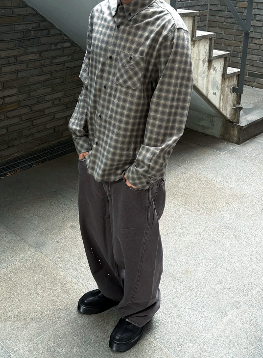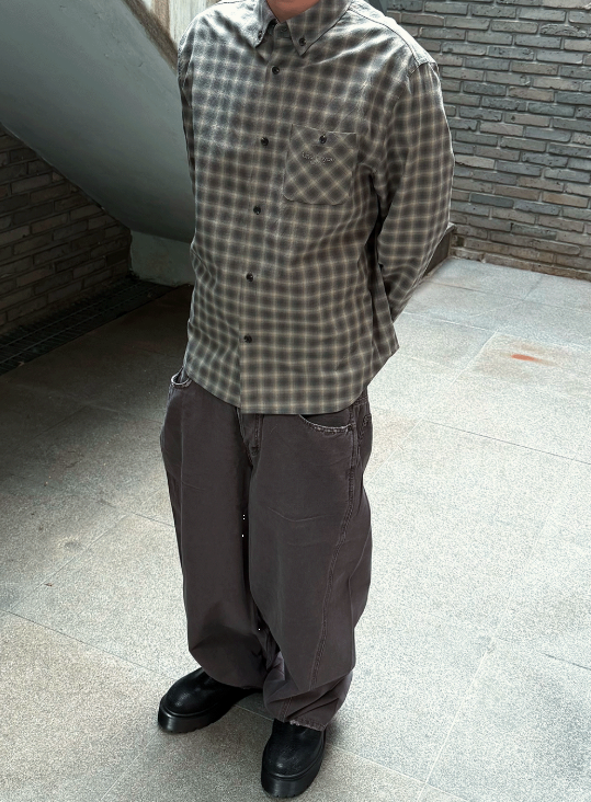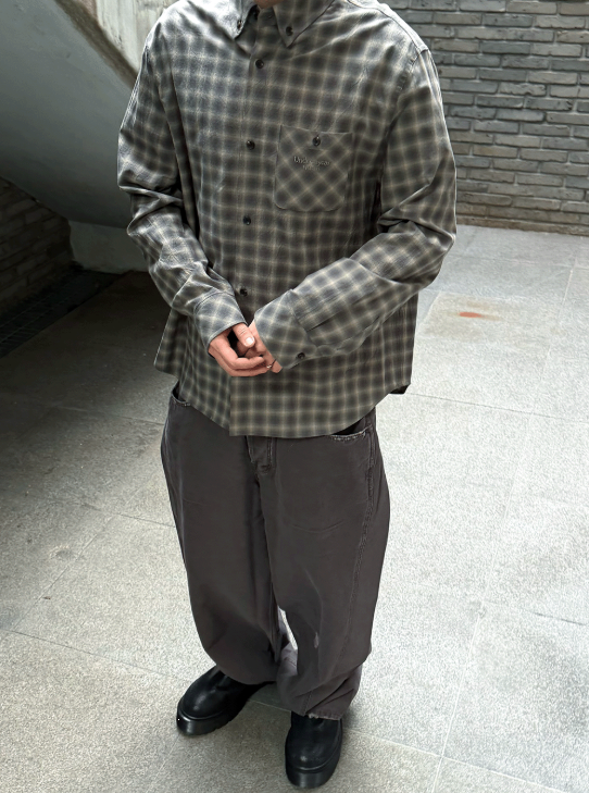 [UNDERMYCAR] Mu.168 Classic Logo Semi-Regular Fit Pocket Check Shirts Dark Beige