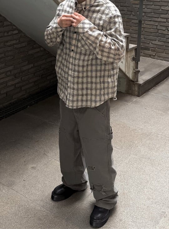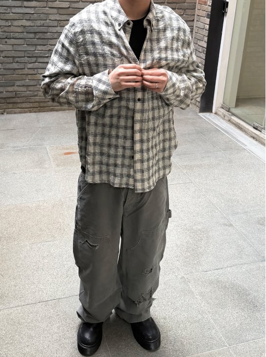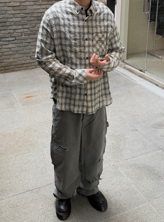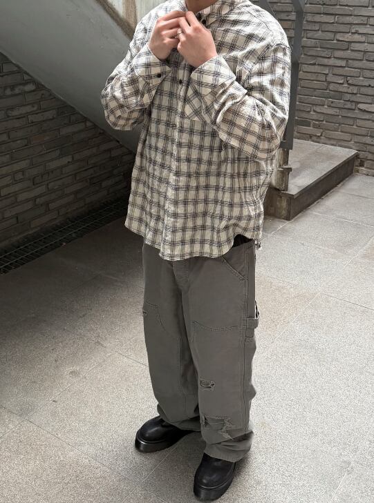 [UNDERMYCAR] Mu.169 Classic Logo Semi-Regular Fit Pocket Check Shirts Light Beige