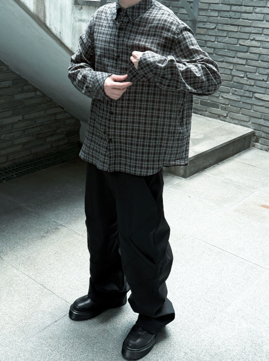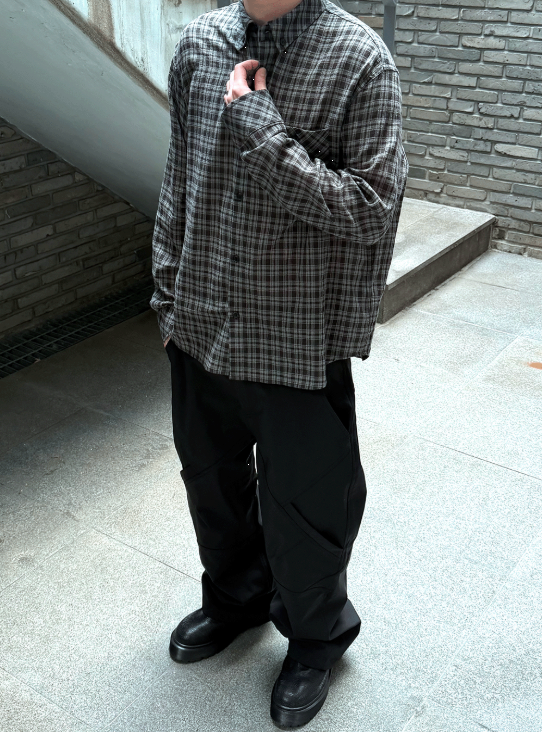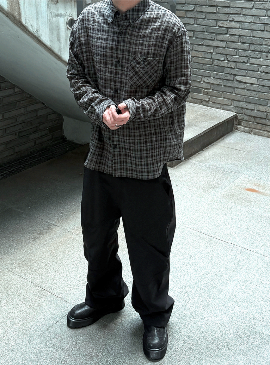 [UNDERMYCAR] Mu.170 Classic Logo Semi-Regular Fit Pocket Check Shirts Deep Khaki