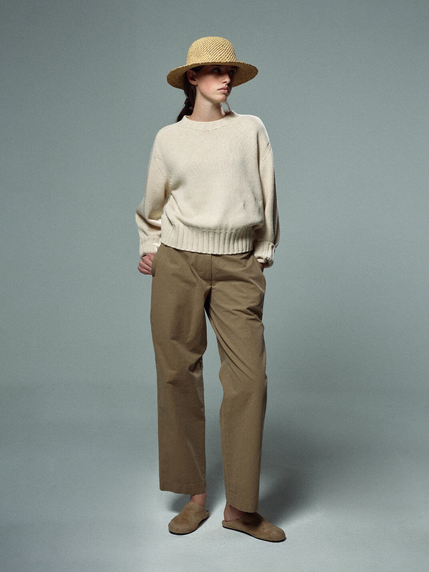 [NOTHING WRITTEN] Ground cotton trousers (Camel)