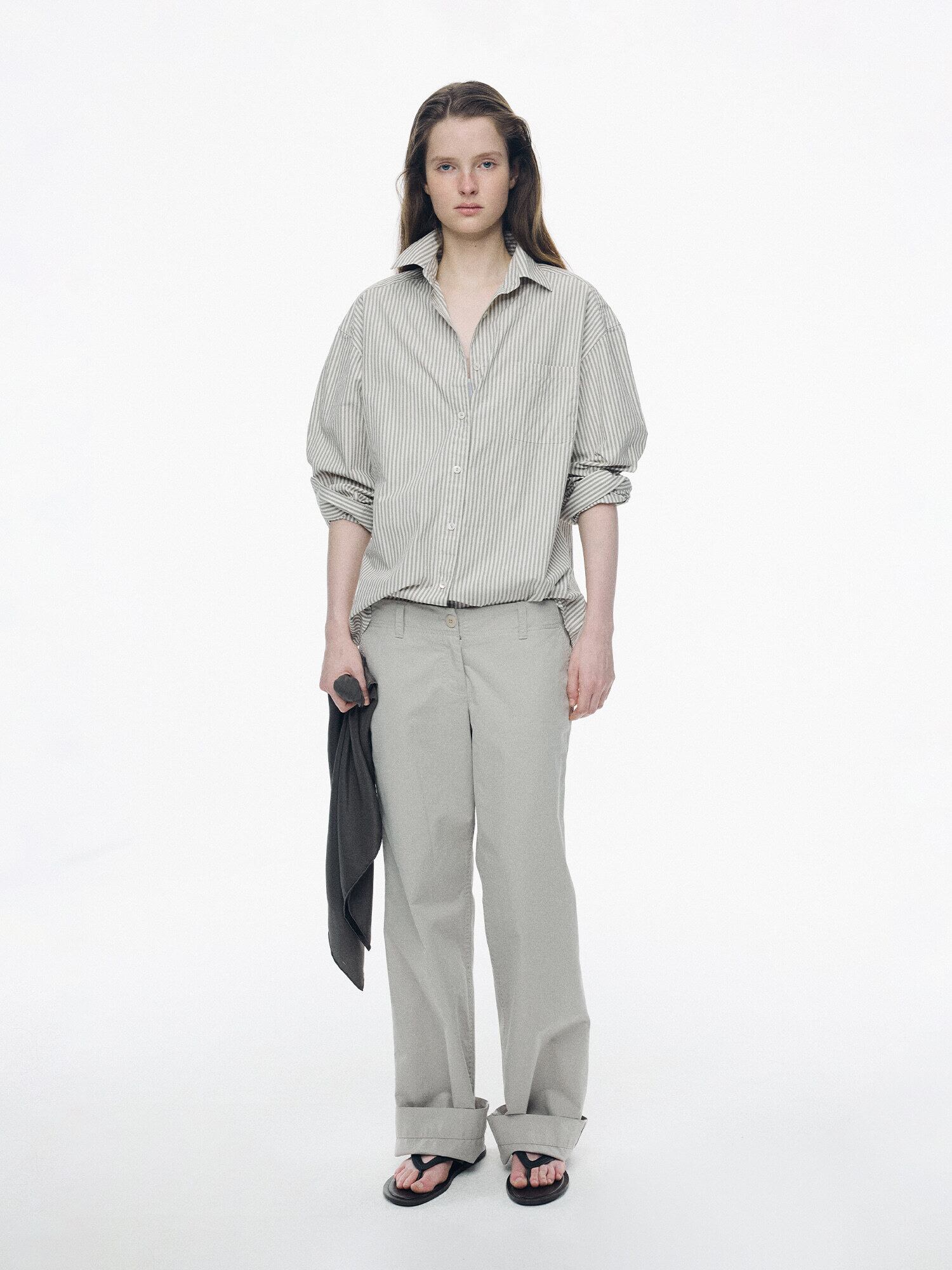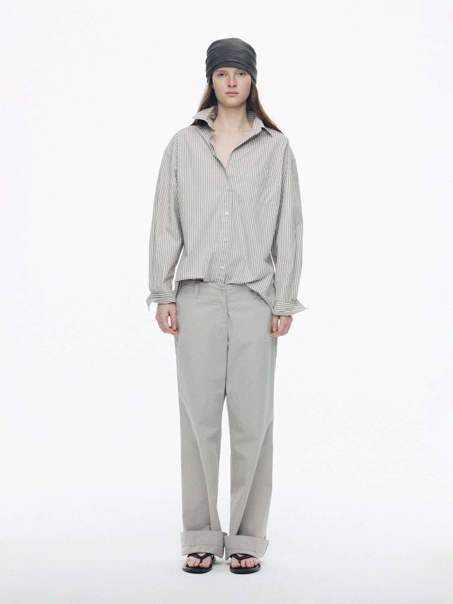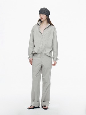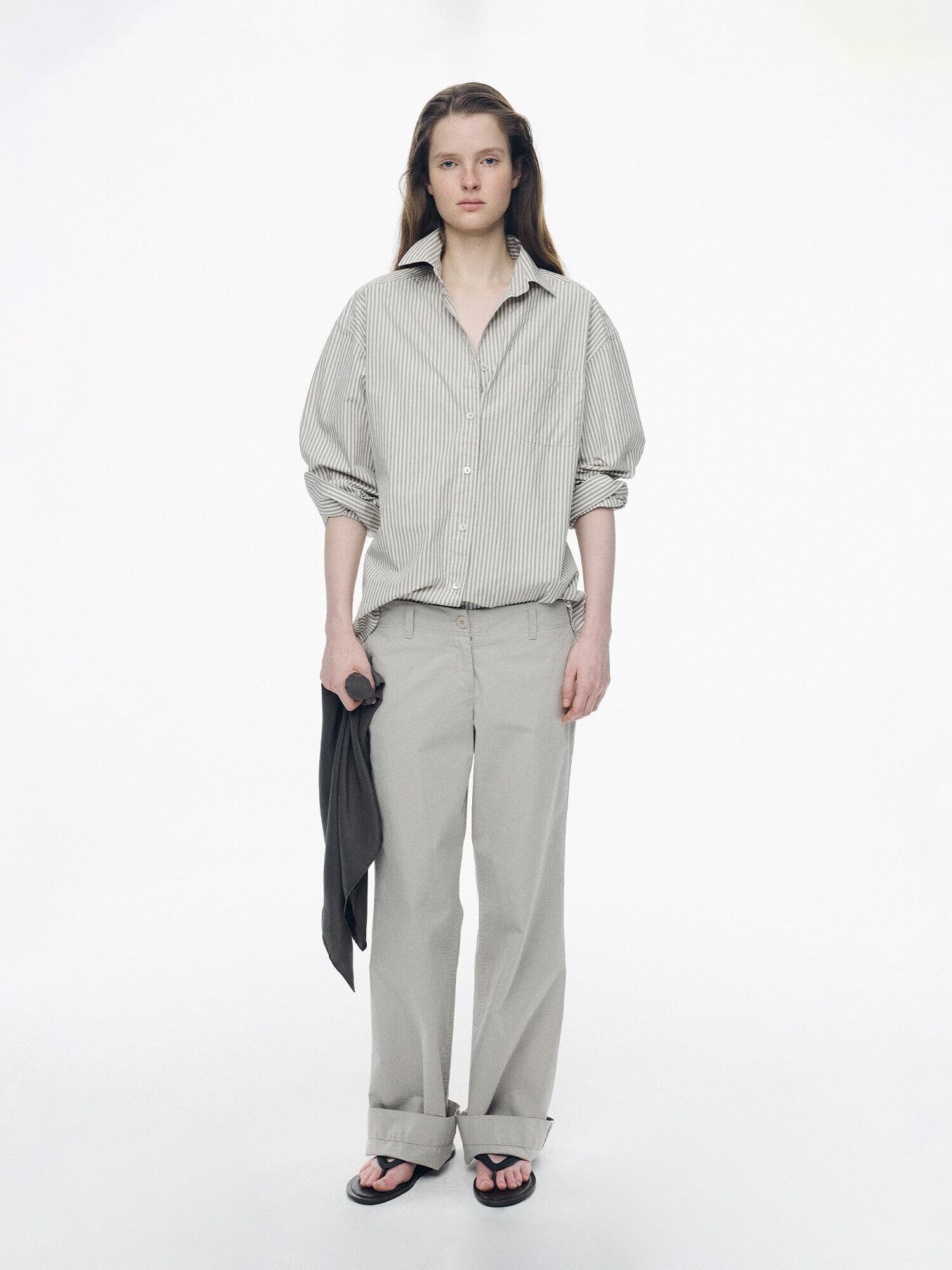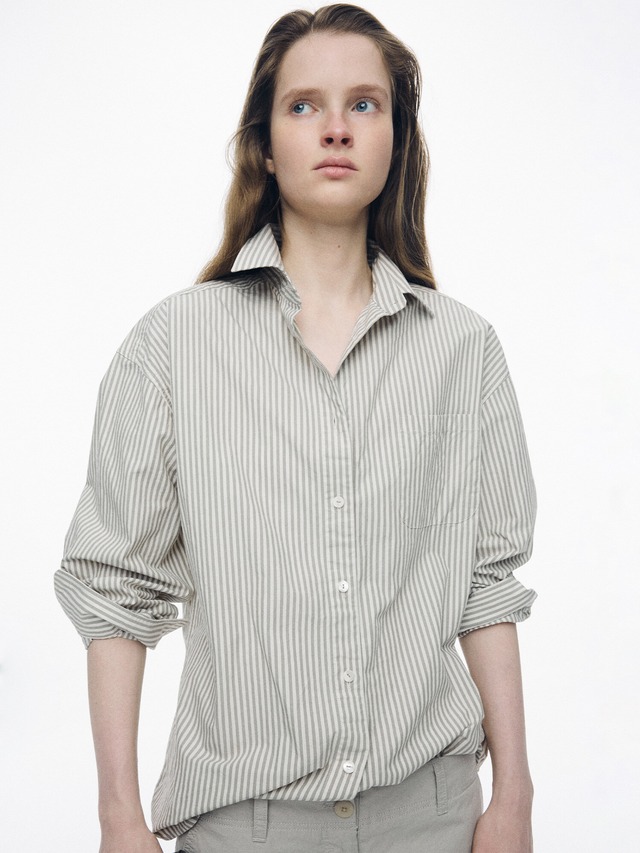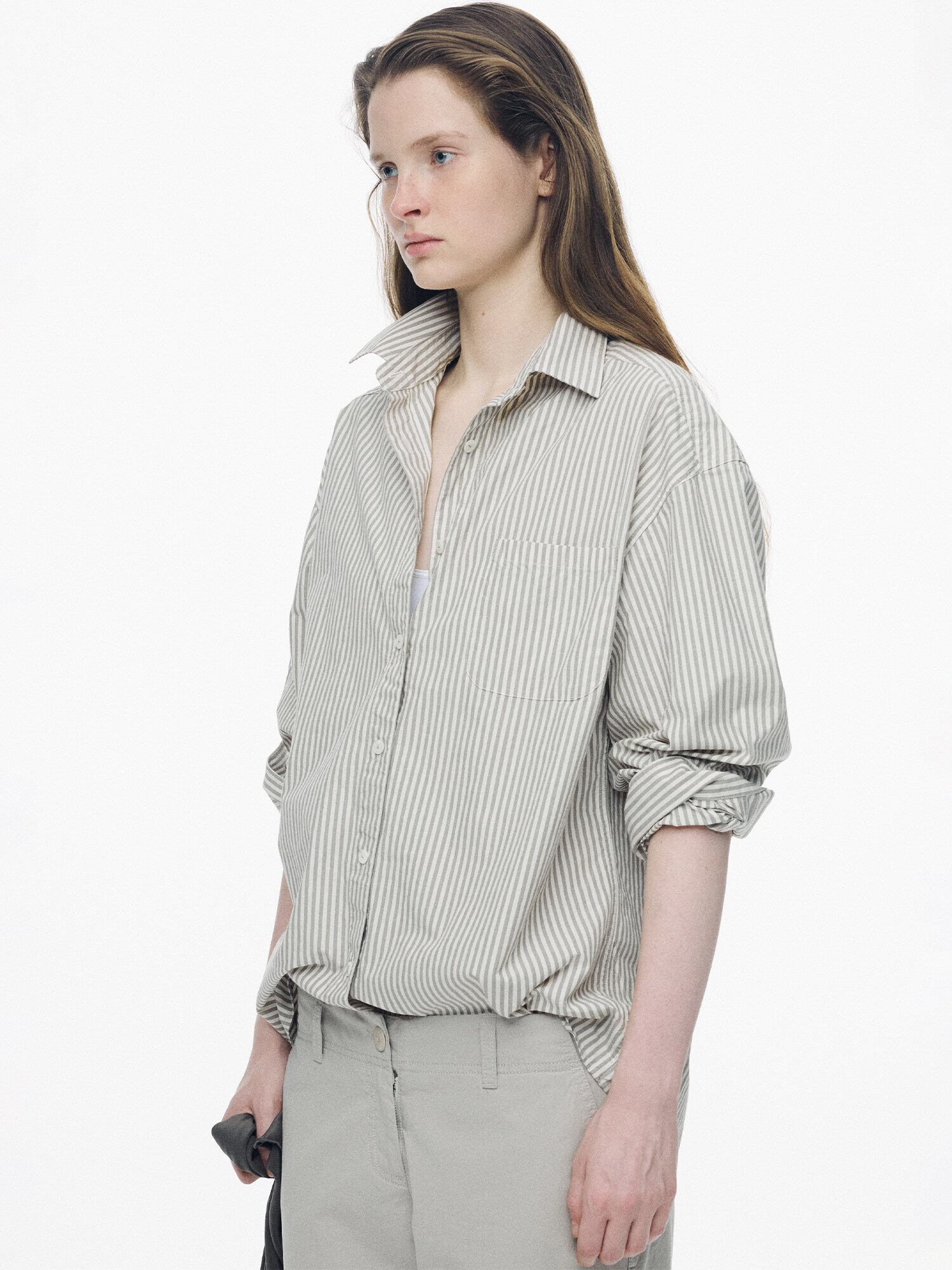 [NOTHING WRITTEN] Monday cotton shirt (Gray stripe, W)