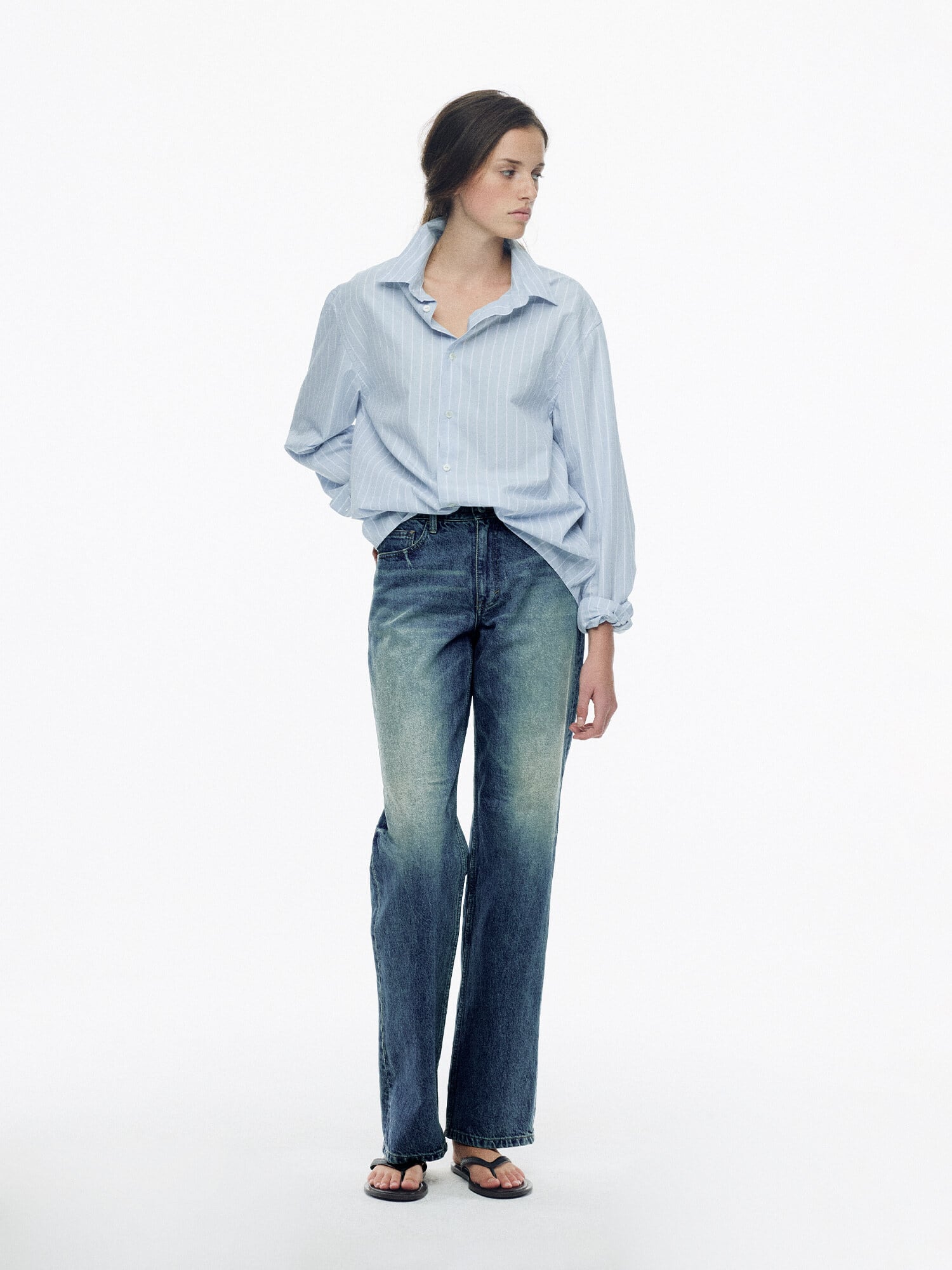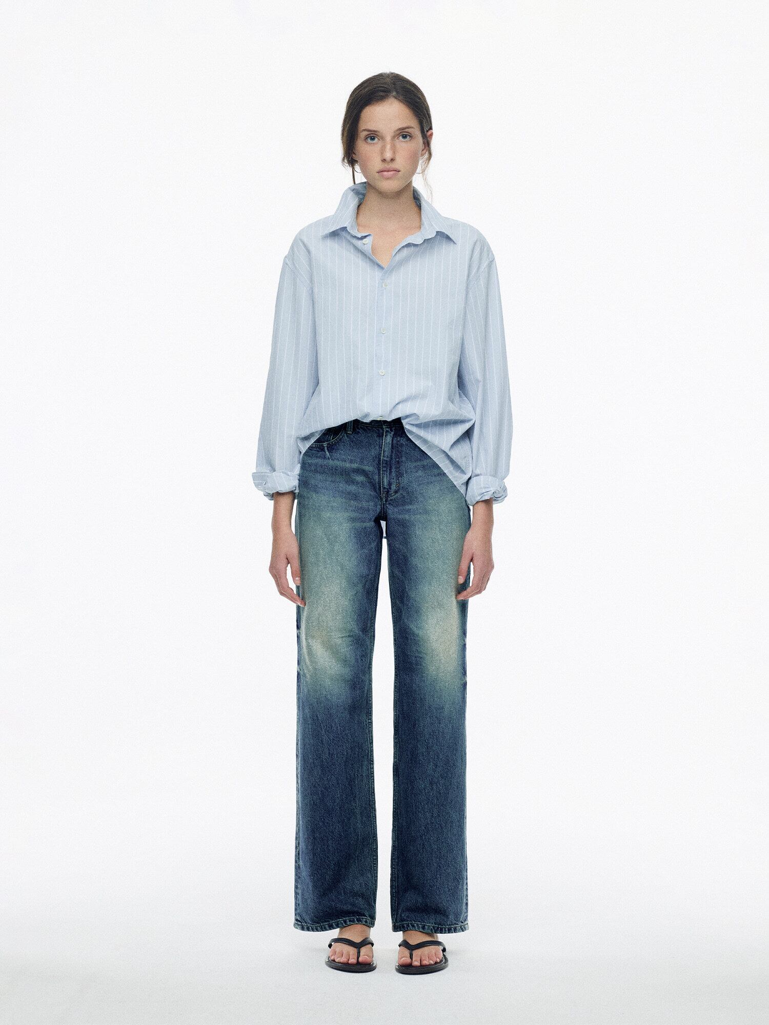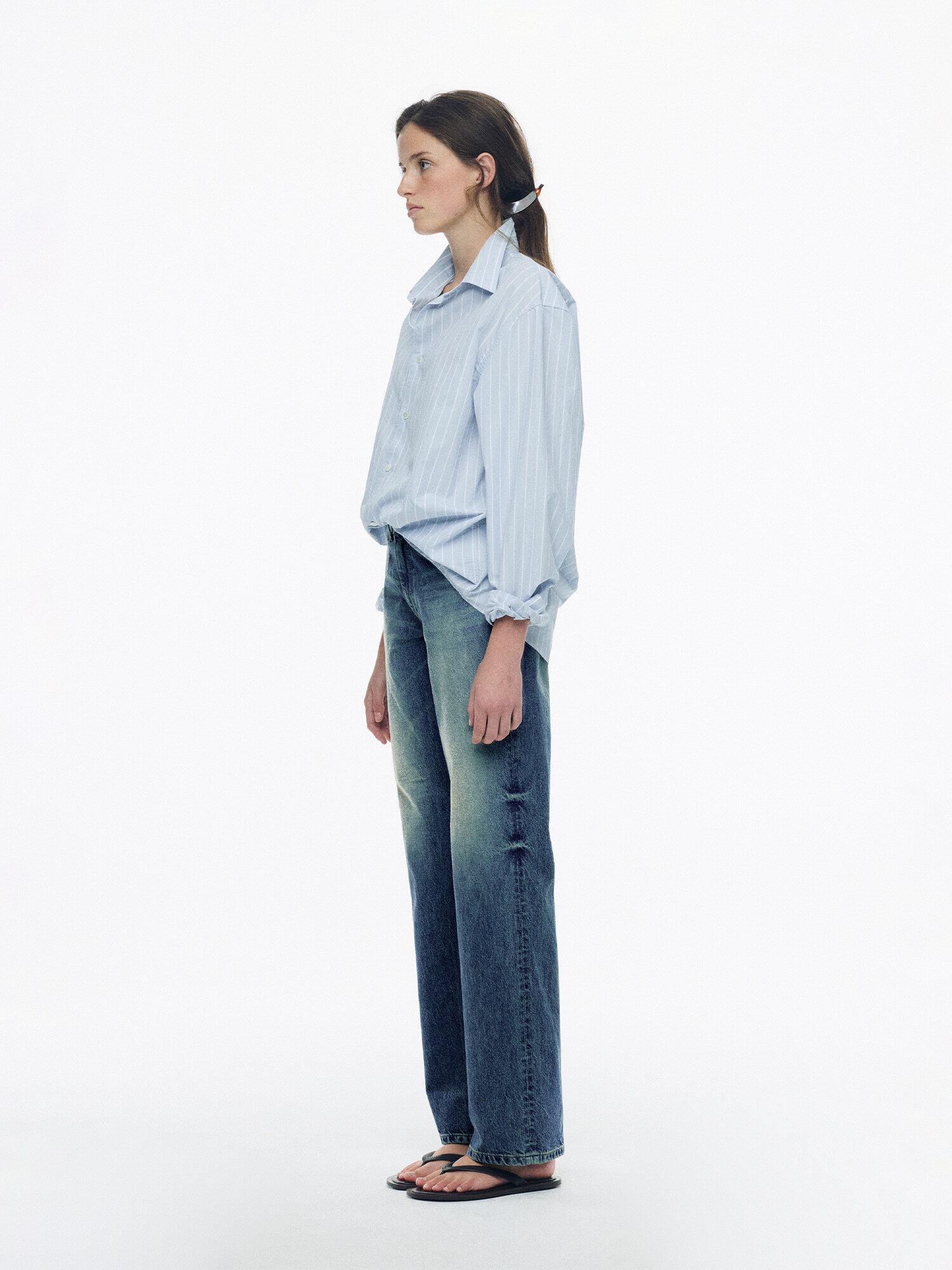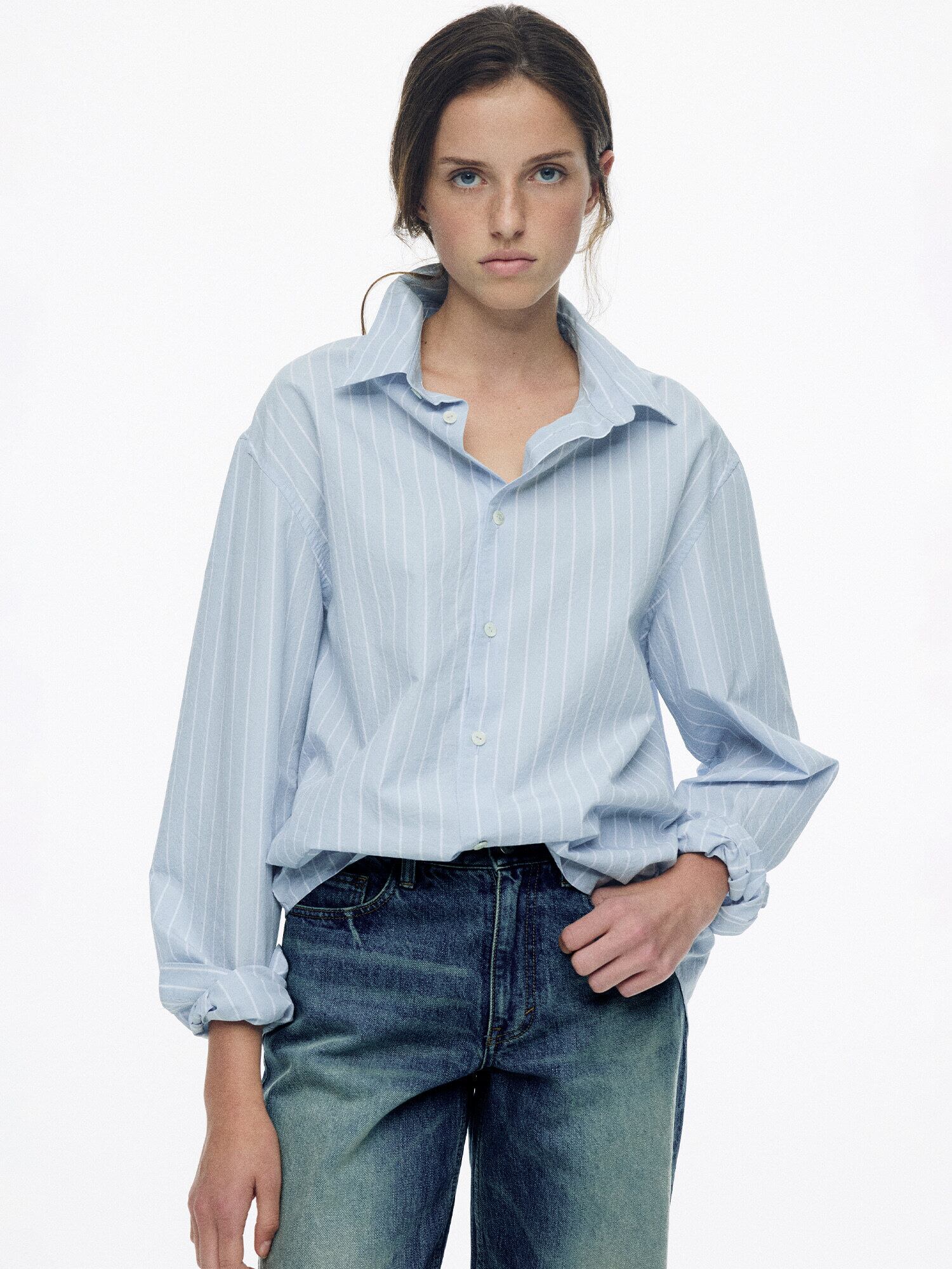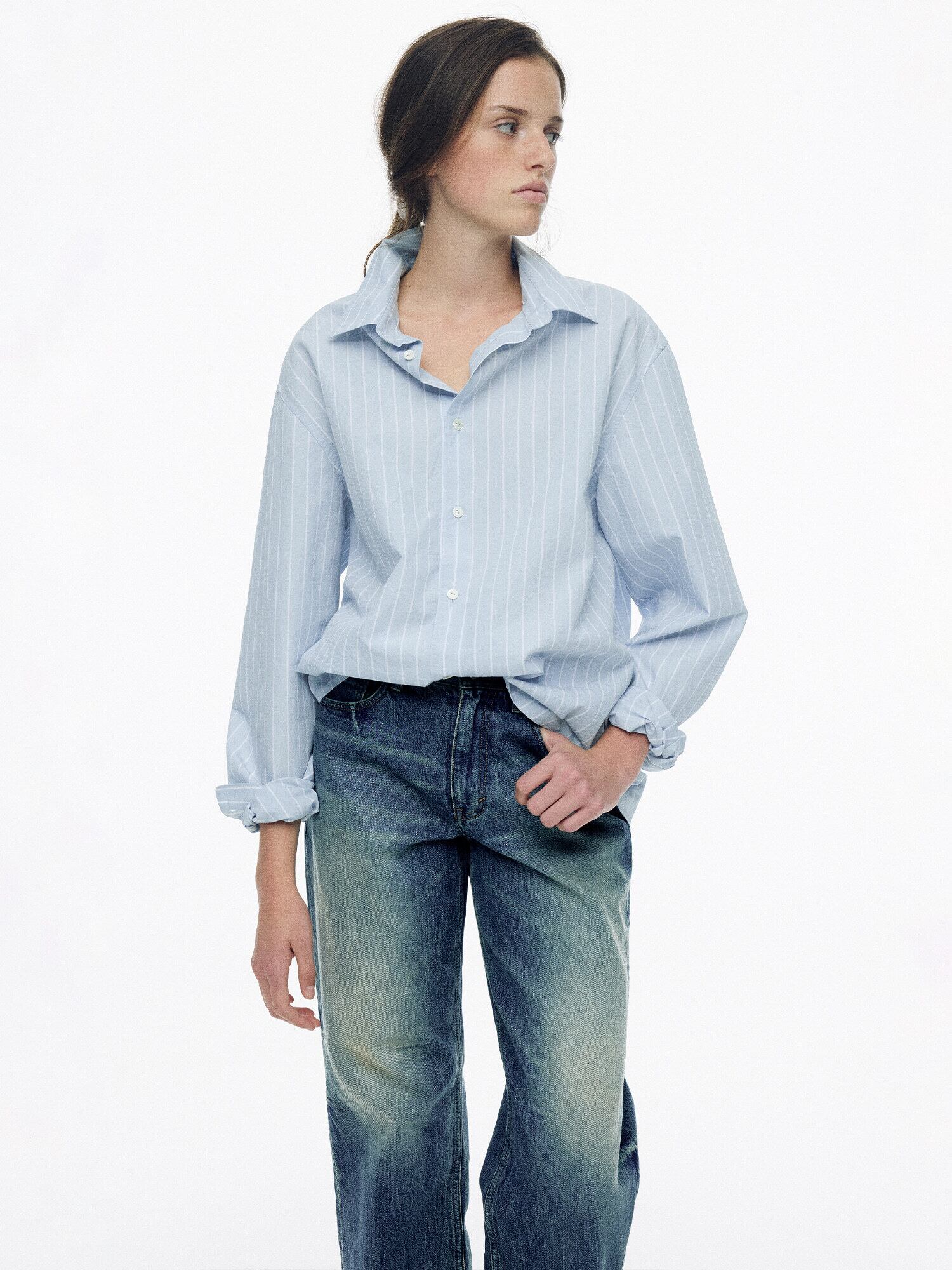 [NOTHING WRITTEN] Poplin stripe shirt (LIght blue, W)