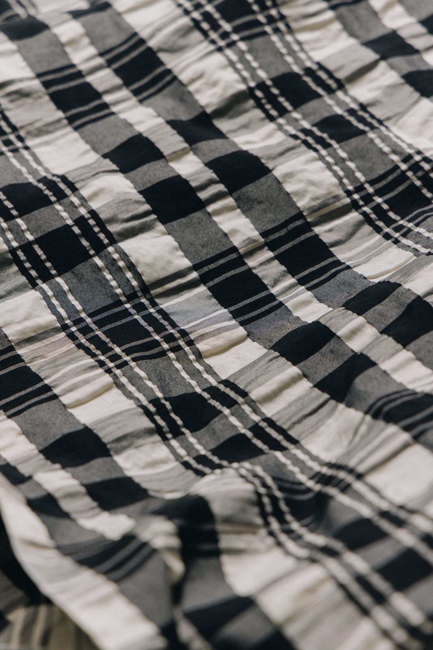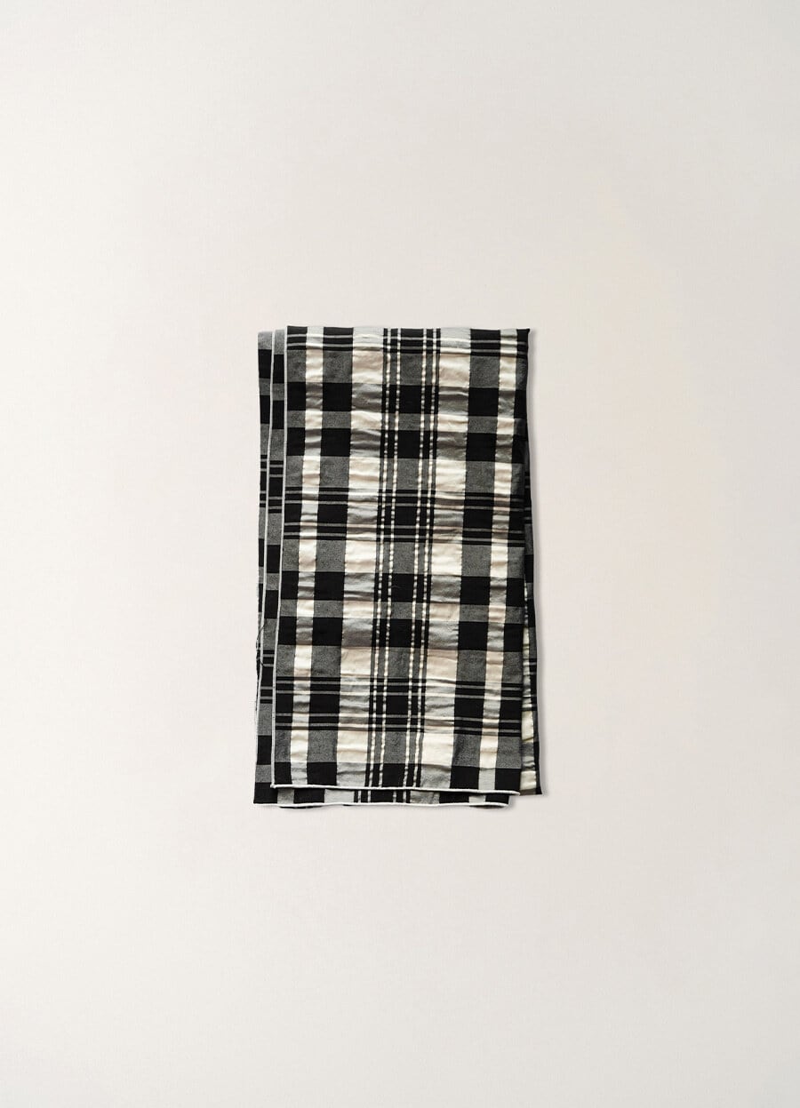 [NOTHING WRITTEN] Textured check scarf (Black)